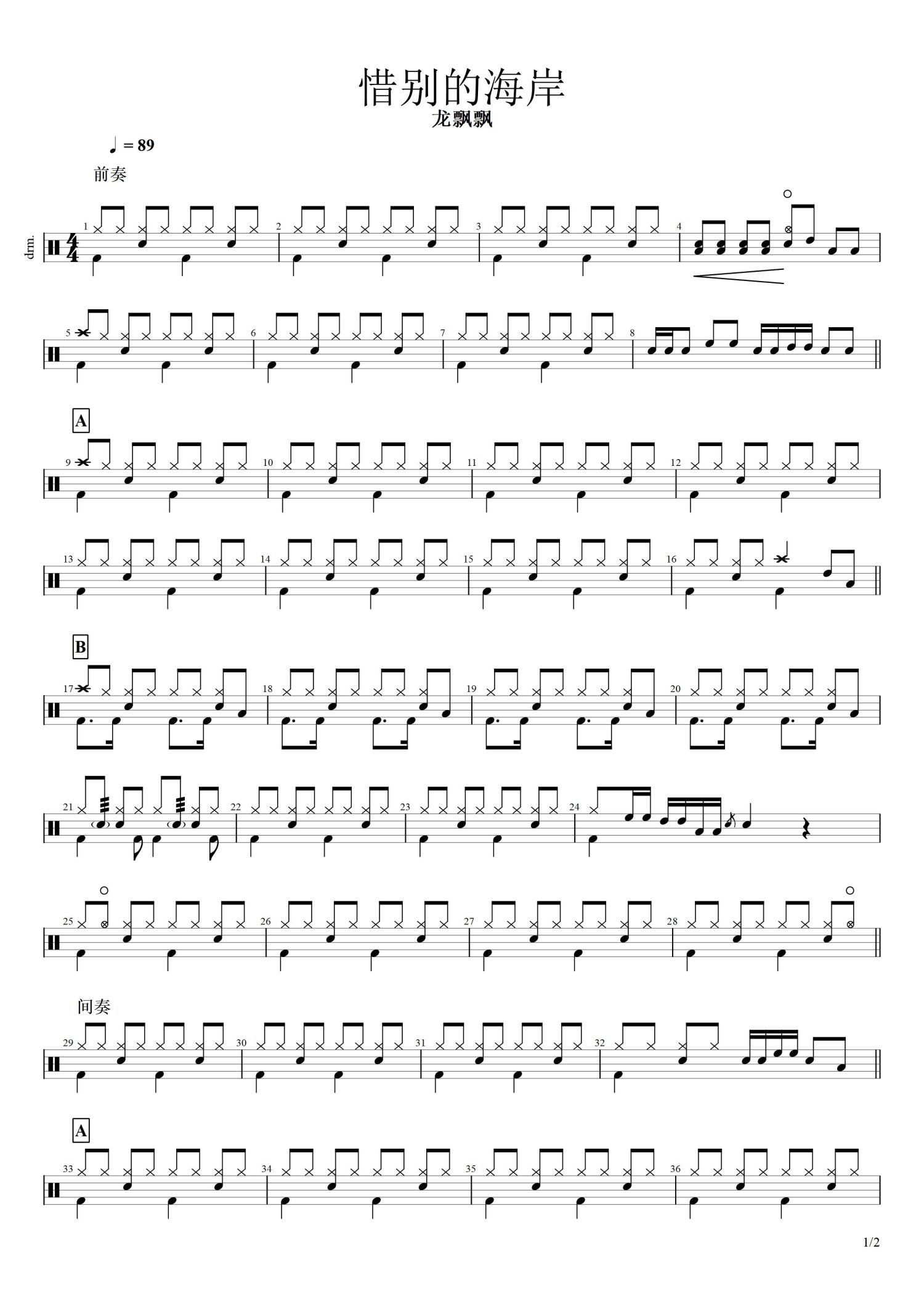 • 惜别的海岸鼓谱 - 龙飘飘 - 架子鼓谱第1张