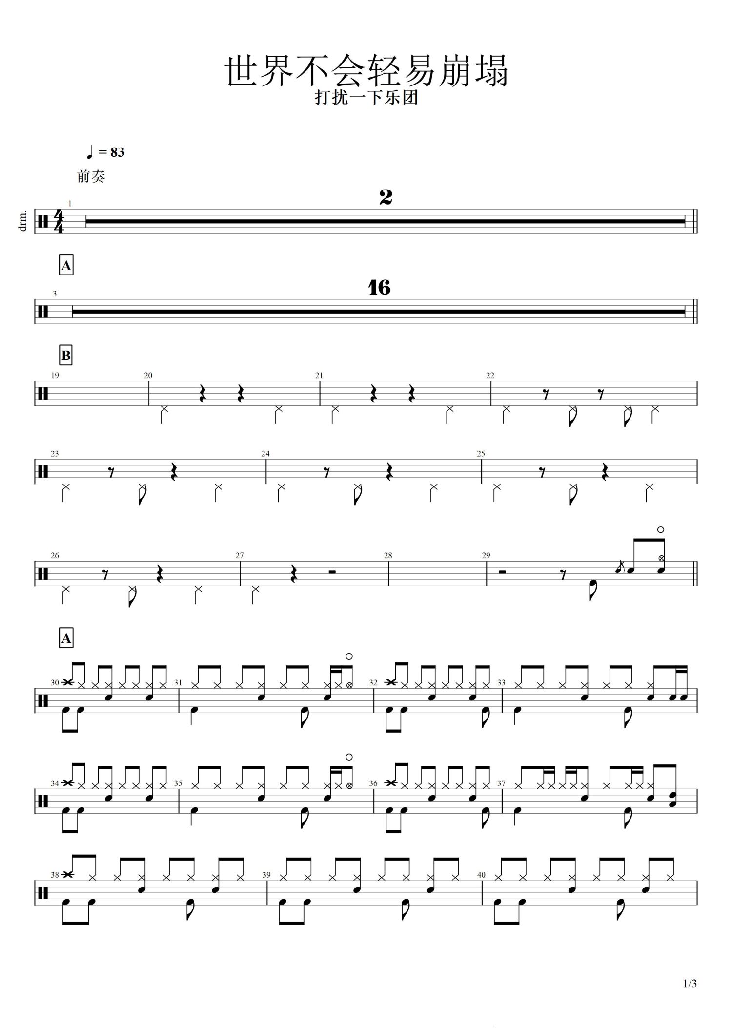 • 世界不会轻易崩塌鼓谱 - 打扰一下乐团 - 架子鼓谱第1张