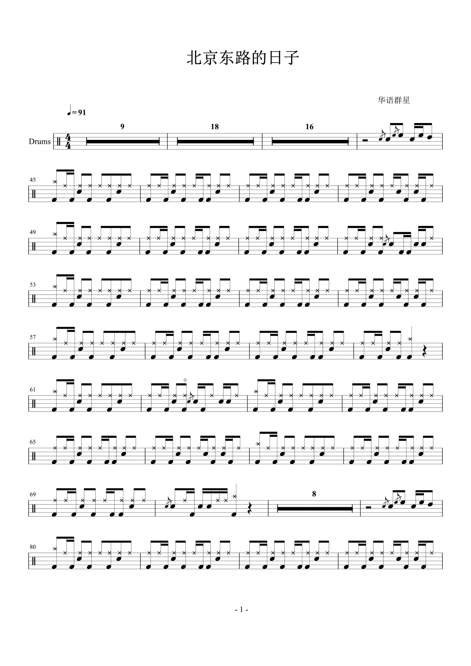 • 北京东路的日子鼓谱 - 华语群星 - 架子鼓谱第1张