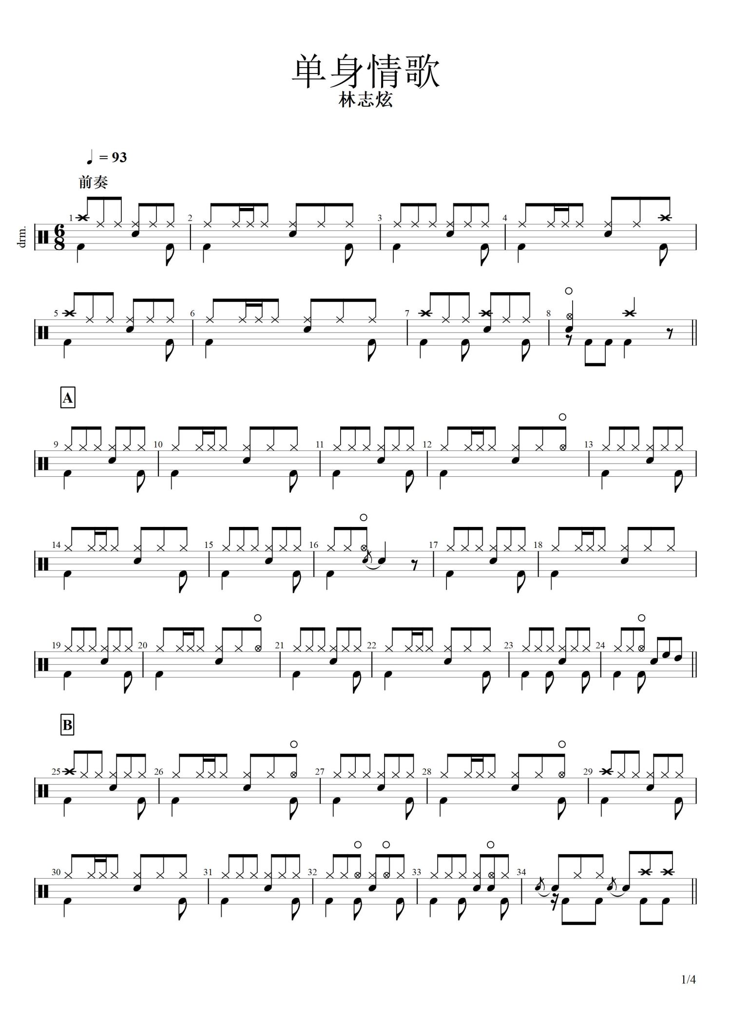 • 单身情歌鼓谱 - 林志炫 - 架子鼓谱第1张