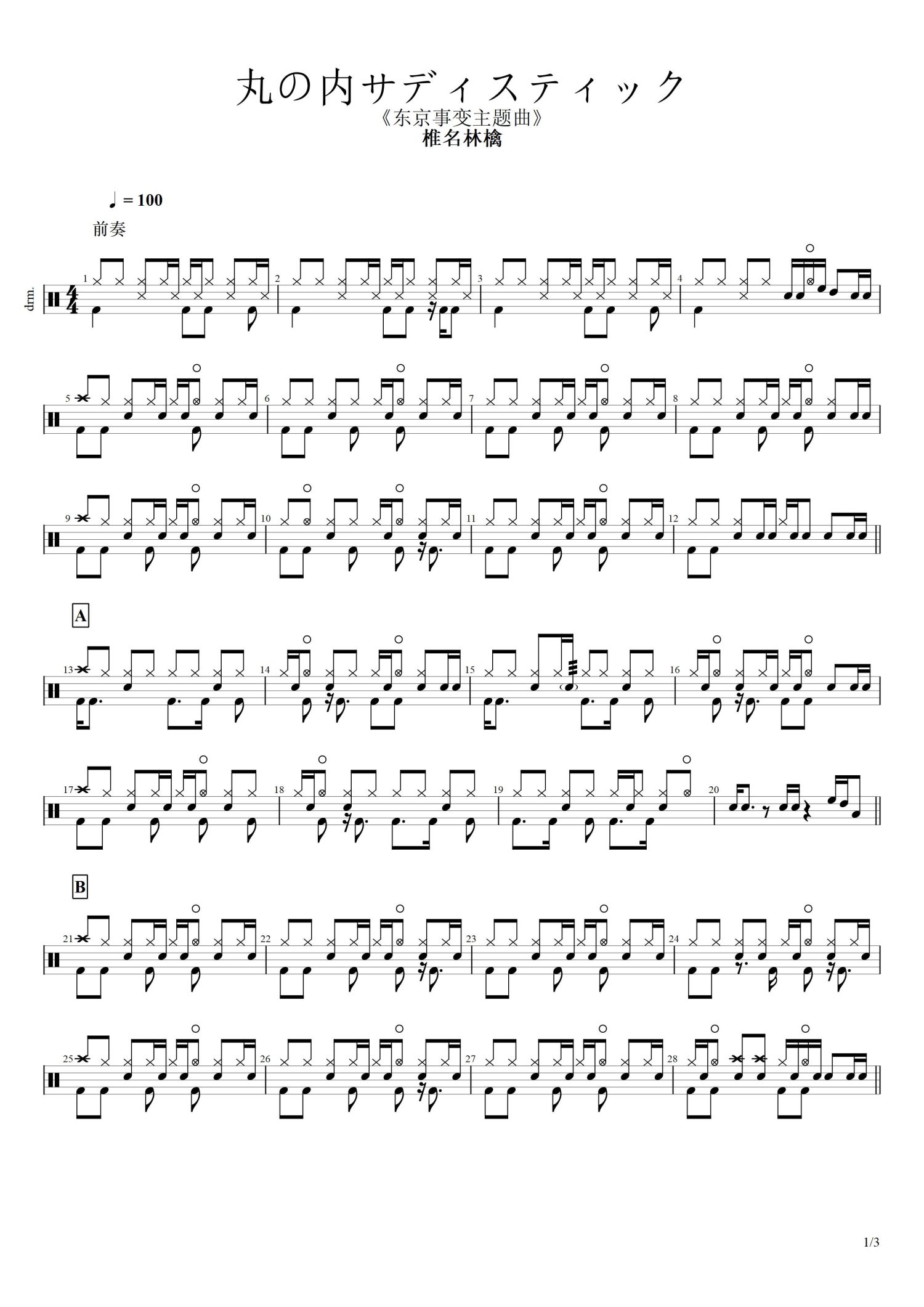 • 丸の内サディスティック鼓谱 - 东京事变主题曲 - 架子鼓谱第1张