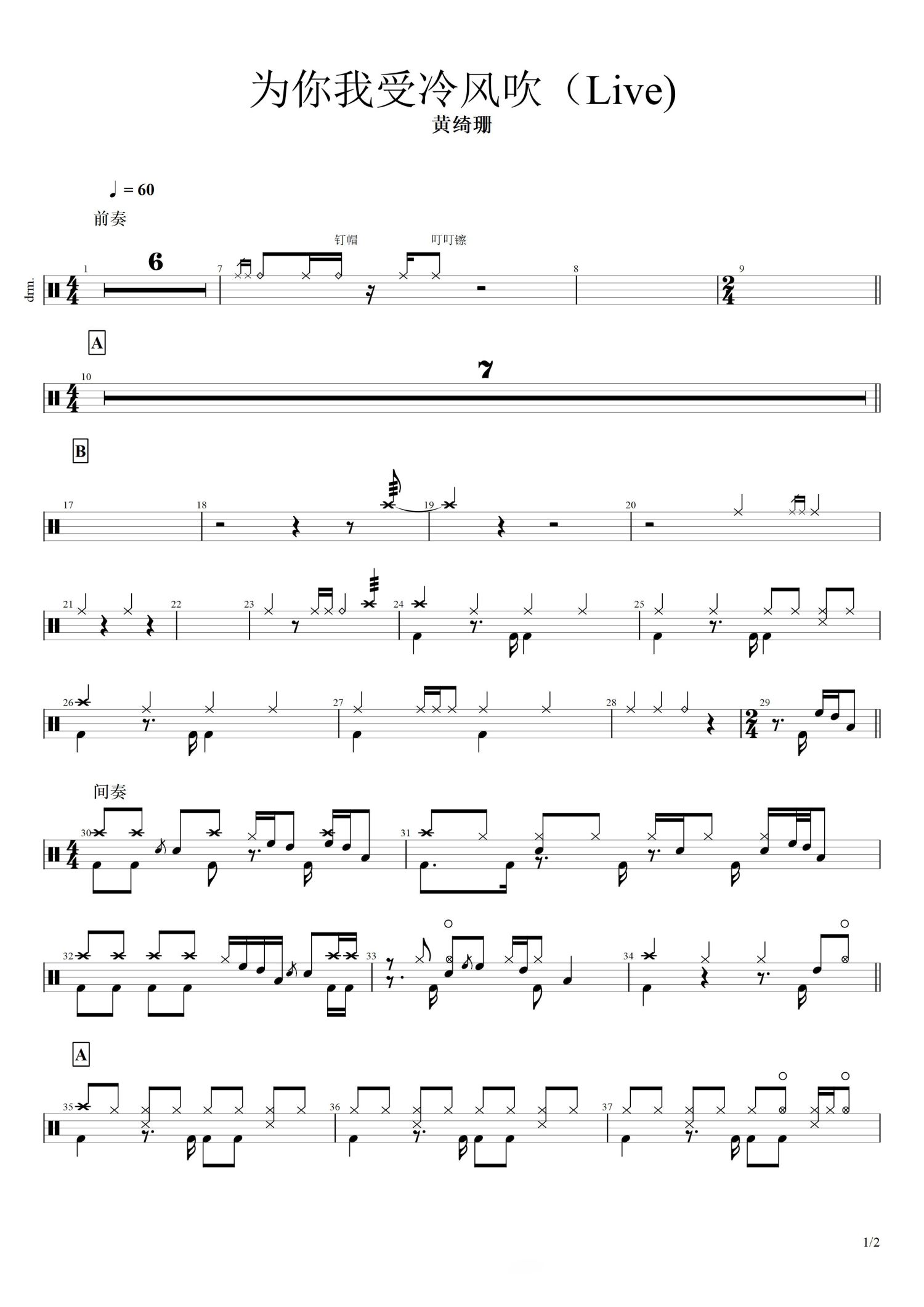 • 为你我受冷风吹鼓谱 - 黄绮珊 - 架子鼓谱第1张