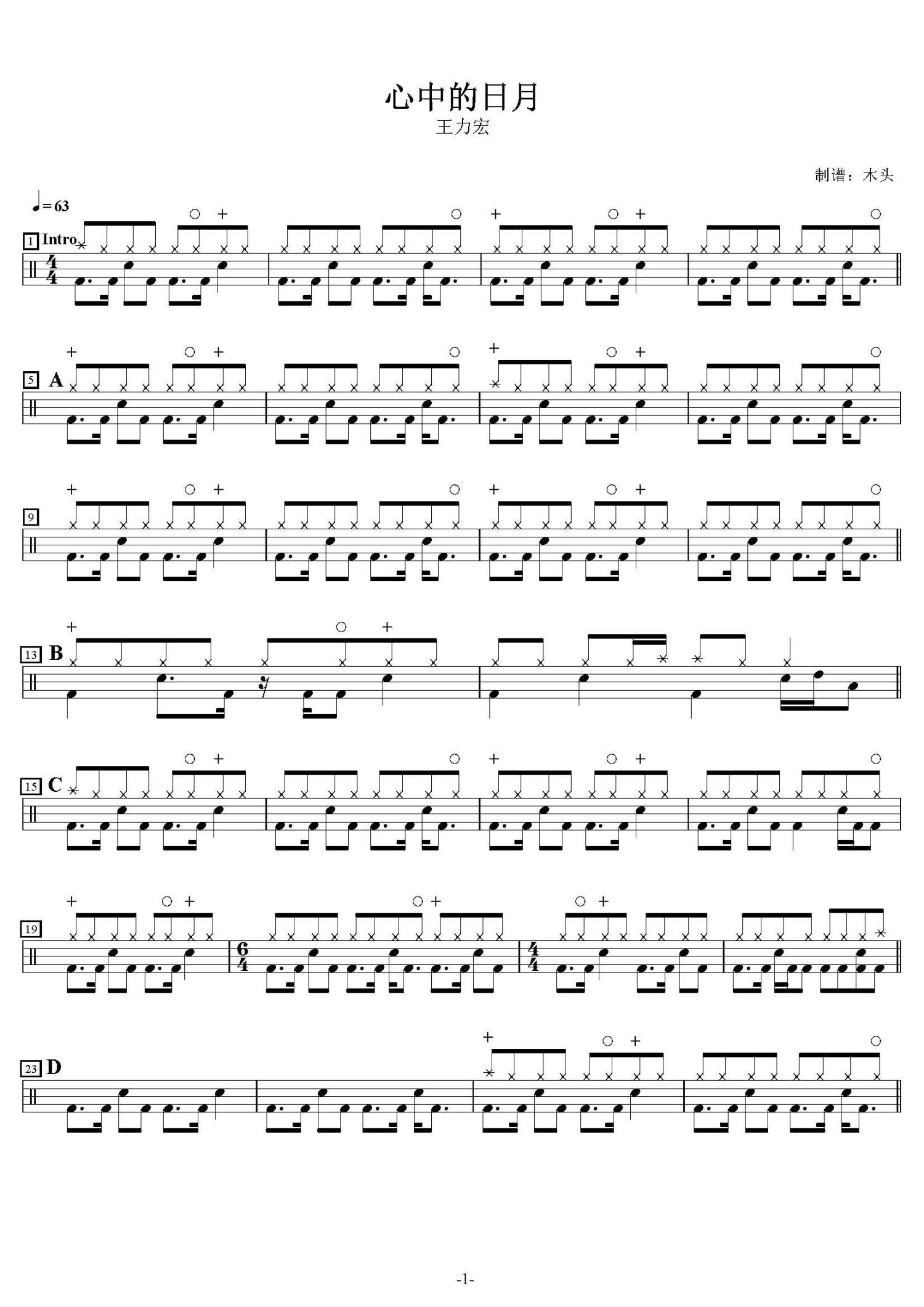 • 心中的日月鼓谱 - 王力宏 - 架子鼓谱第1张