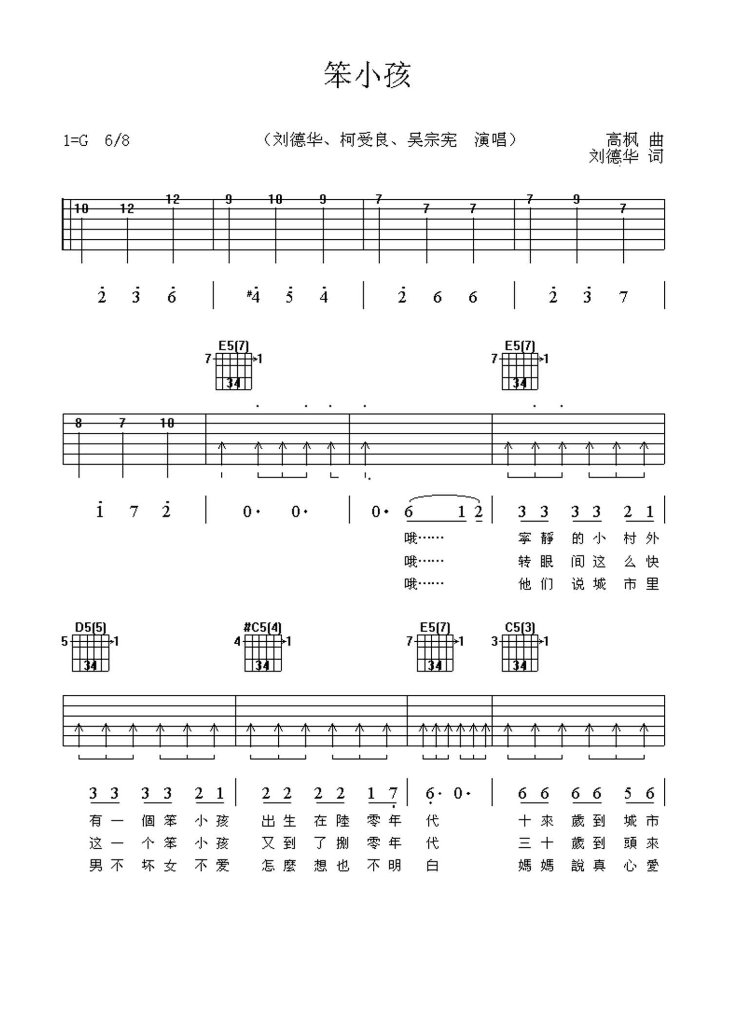 笨小孩吉他谱 - 刘德华 - G调吉他弹唱谱