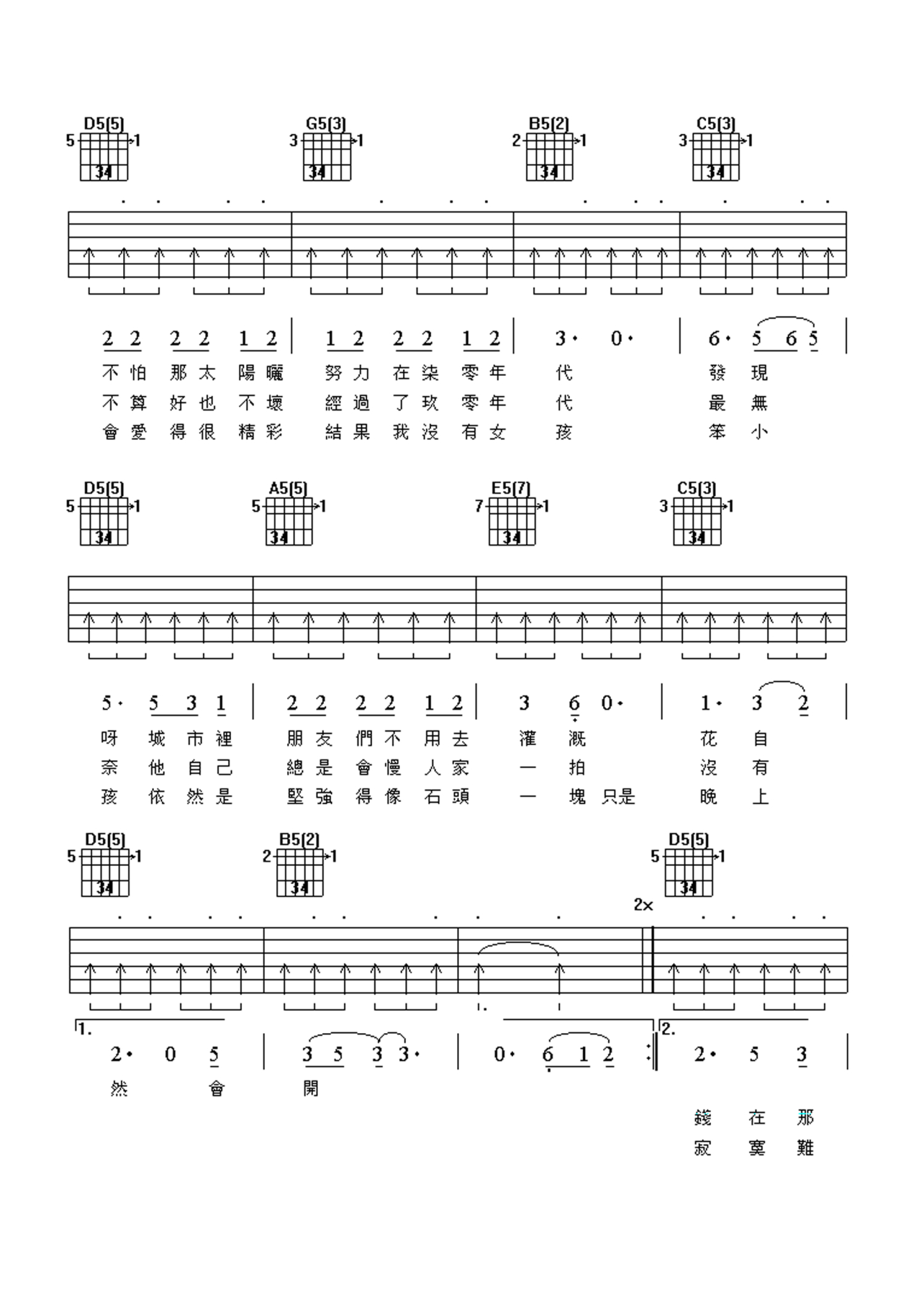 当前位置:琴谱网>吉他弹唱>笨小孩