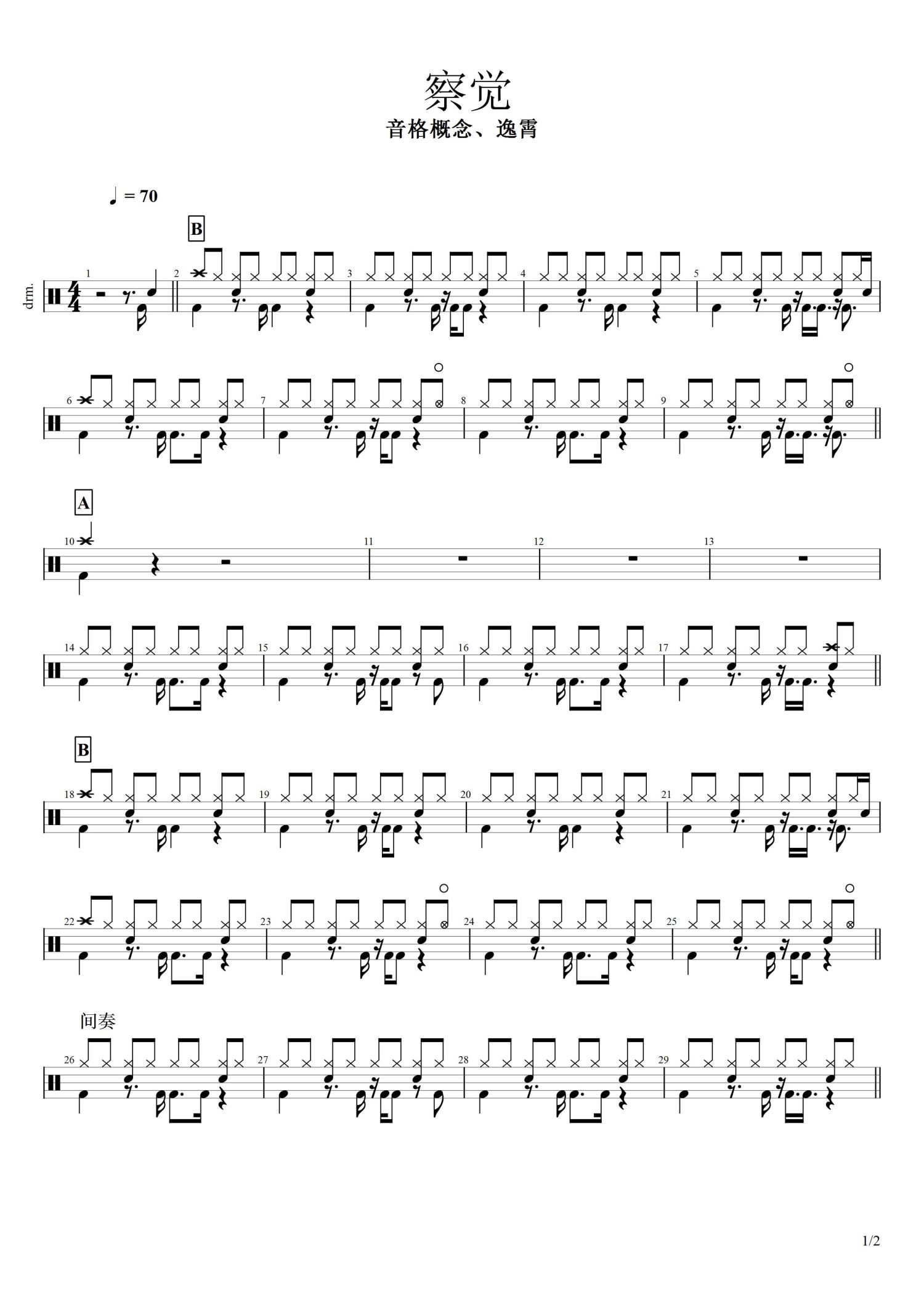 • 察觉鼓谱 - 音格概念/逸霄 - 架子鼓谱第1张
