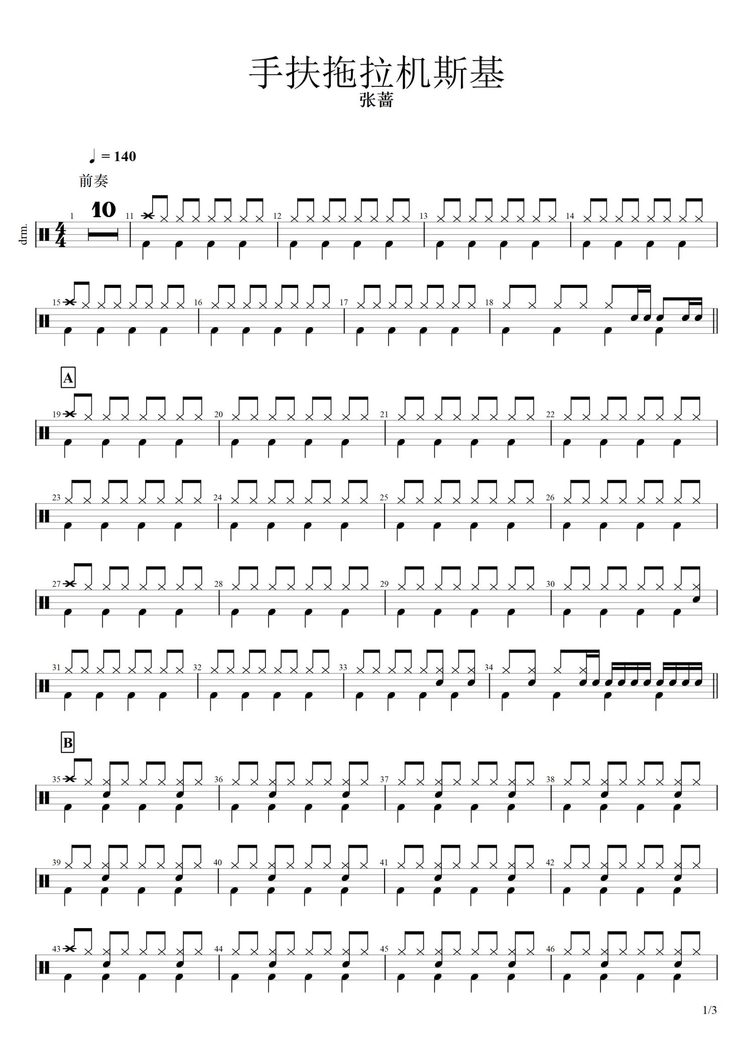 手扶拖拉机斯基鼓谱 - 张蔷 - 架子鼓谱