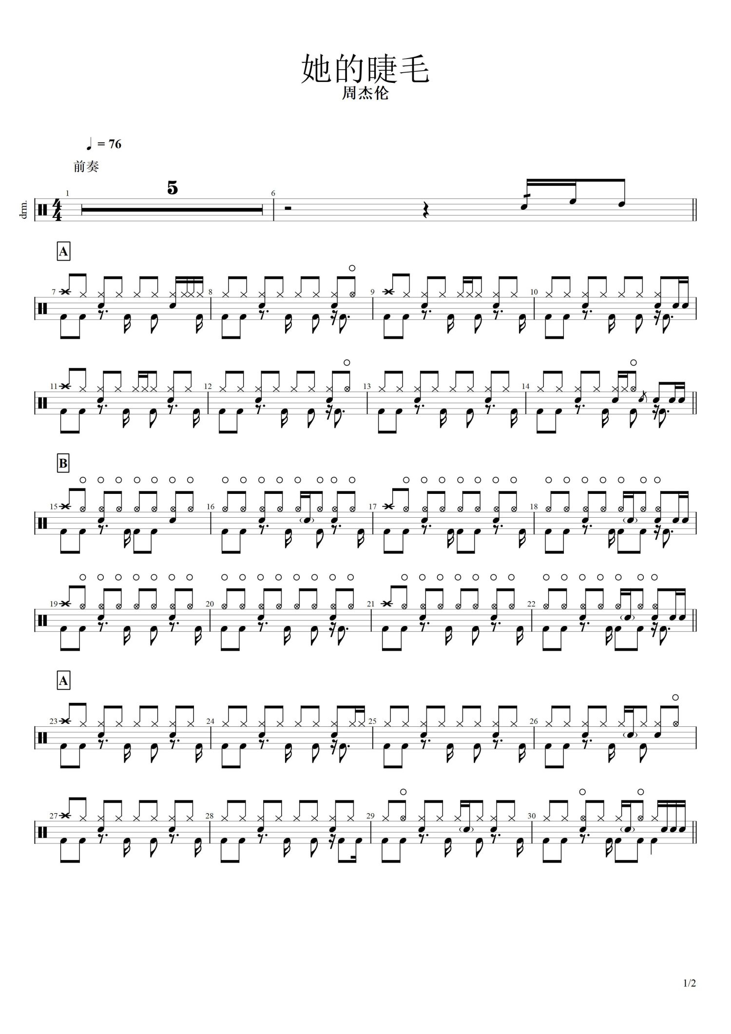 她的睫毛鼓谱 - 周杰伦 - 架子鼓谱