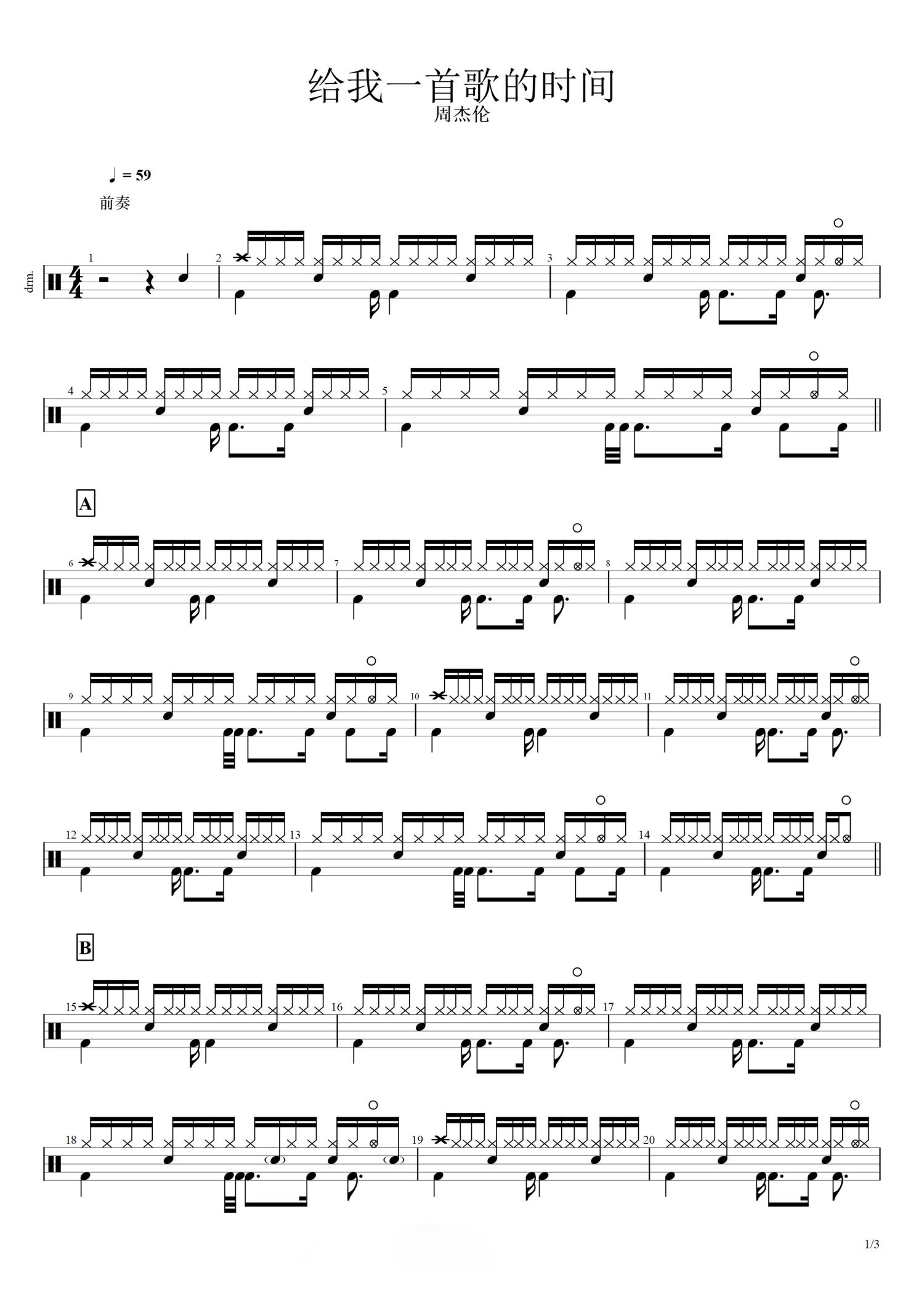 • 给我一首歌的时间鼓谱 - 周杰伦 - 架子鼓谱第1张