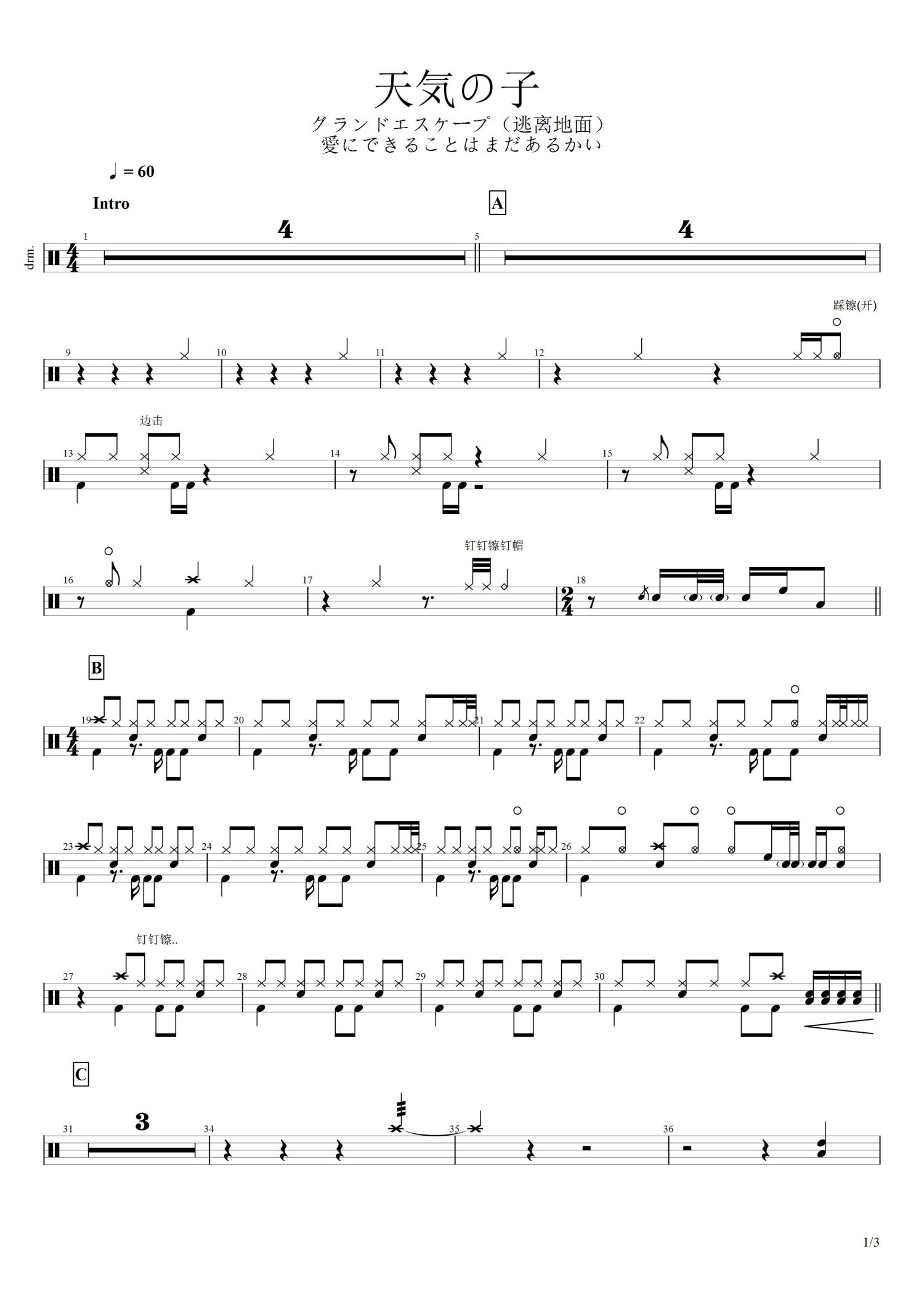 • 天気の子鼓谱 - 架子鼓谱第1张