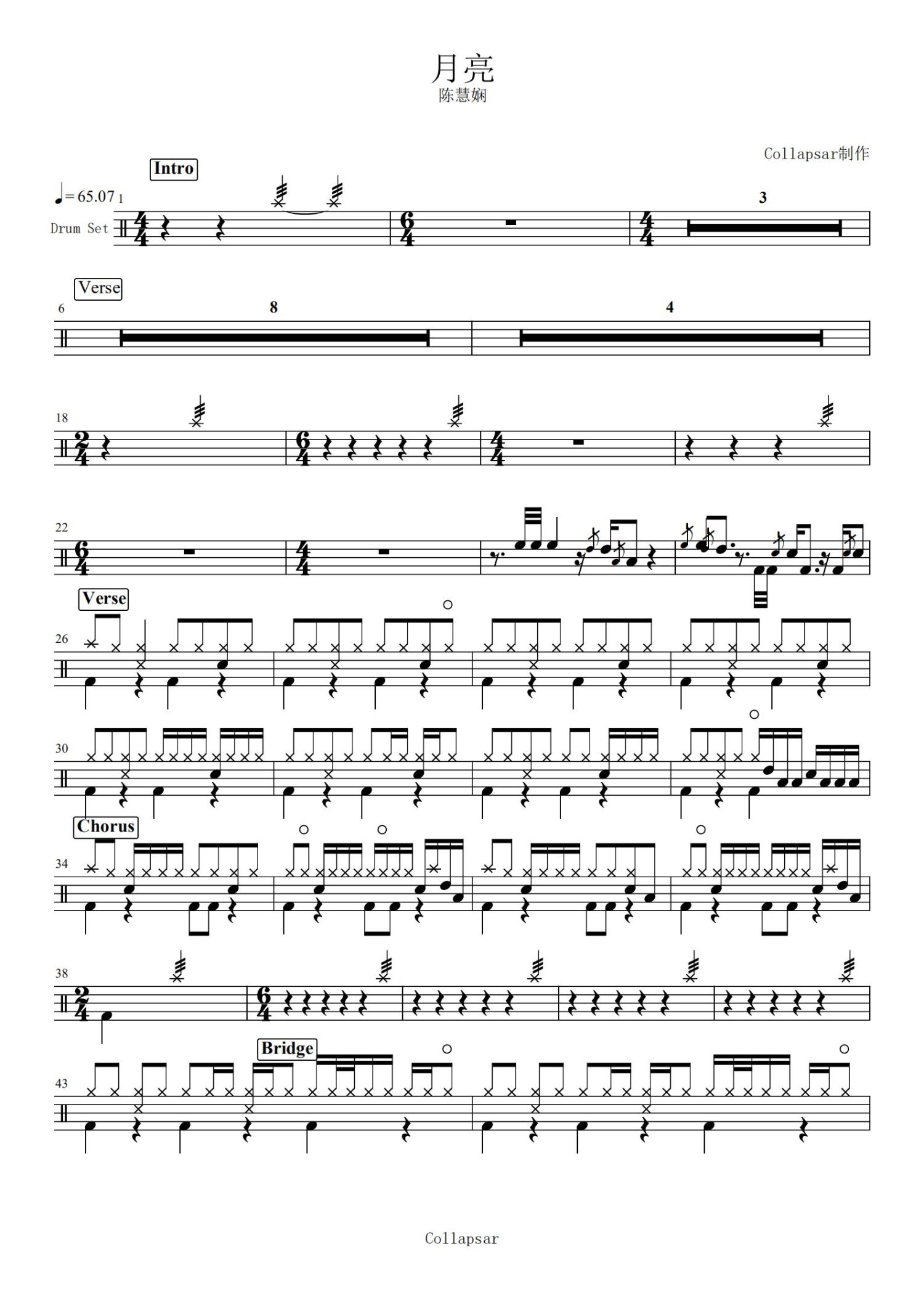 • 月亮鼓谱 - 陈慧娴 - 架子鼓谱第1张