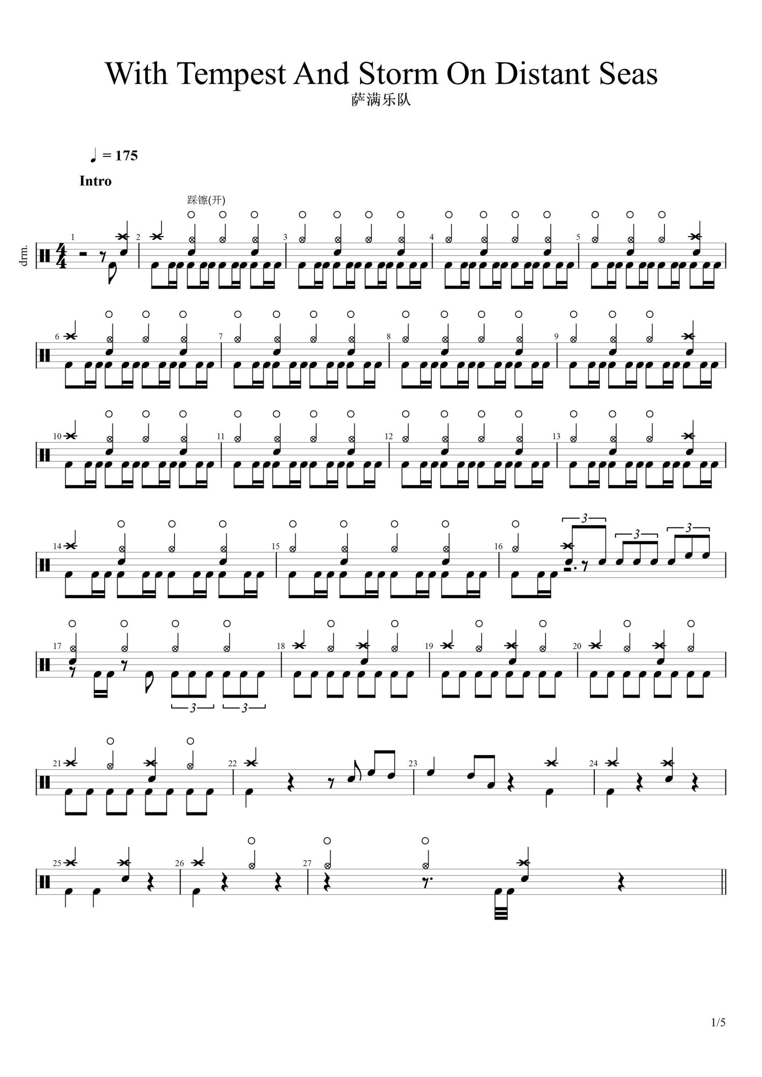 • with tempest and storm on distant seas鼓谱 - 萨满乐队 - 架子鼓谱第1张