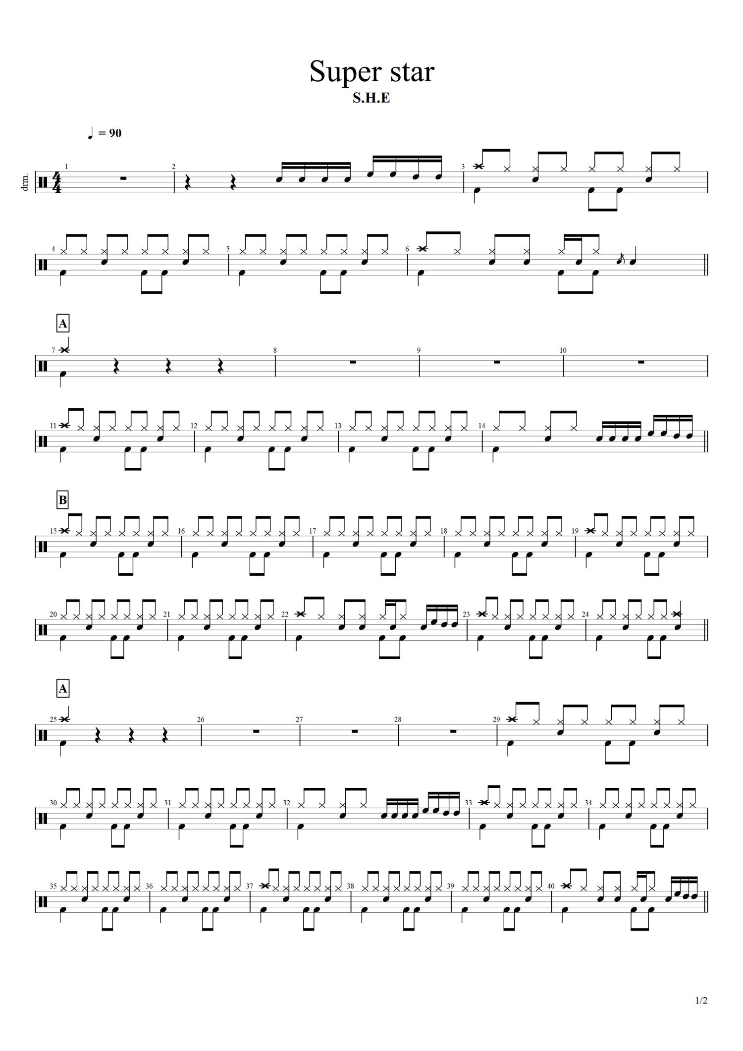 Super star鼓谱 - S.H.E - 架子鼓谱