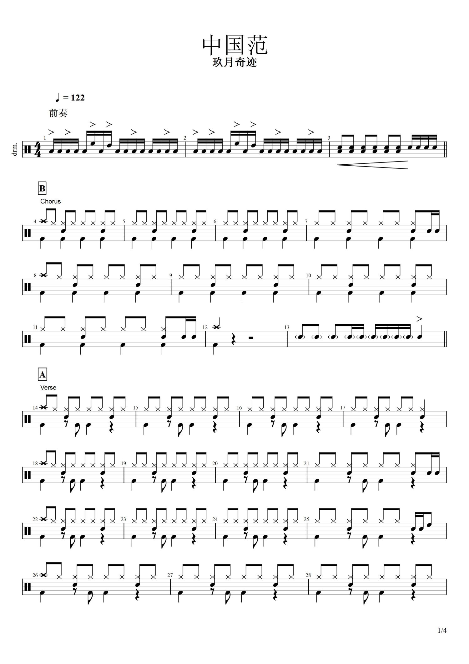 • 中国范儿鼓谱 - 玖月奇迹 - 架子鼓谱第1张
