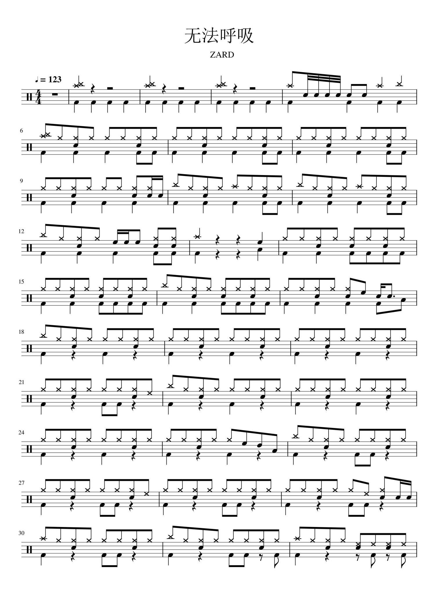 • 无法呼吸鼓谱 - ZARD - 架子鼓谱第1张