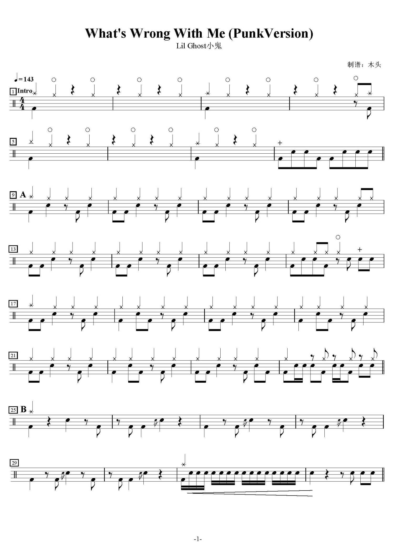 • What's Wrong With Me鼓谱 - Lil Ghost小鬼 - 架子鼓谱第1张