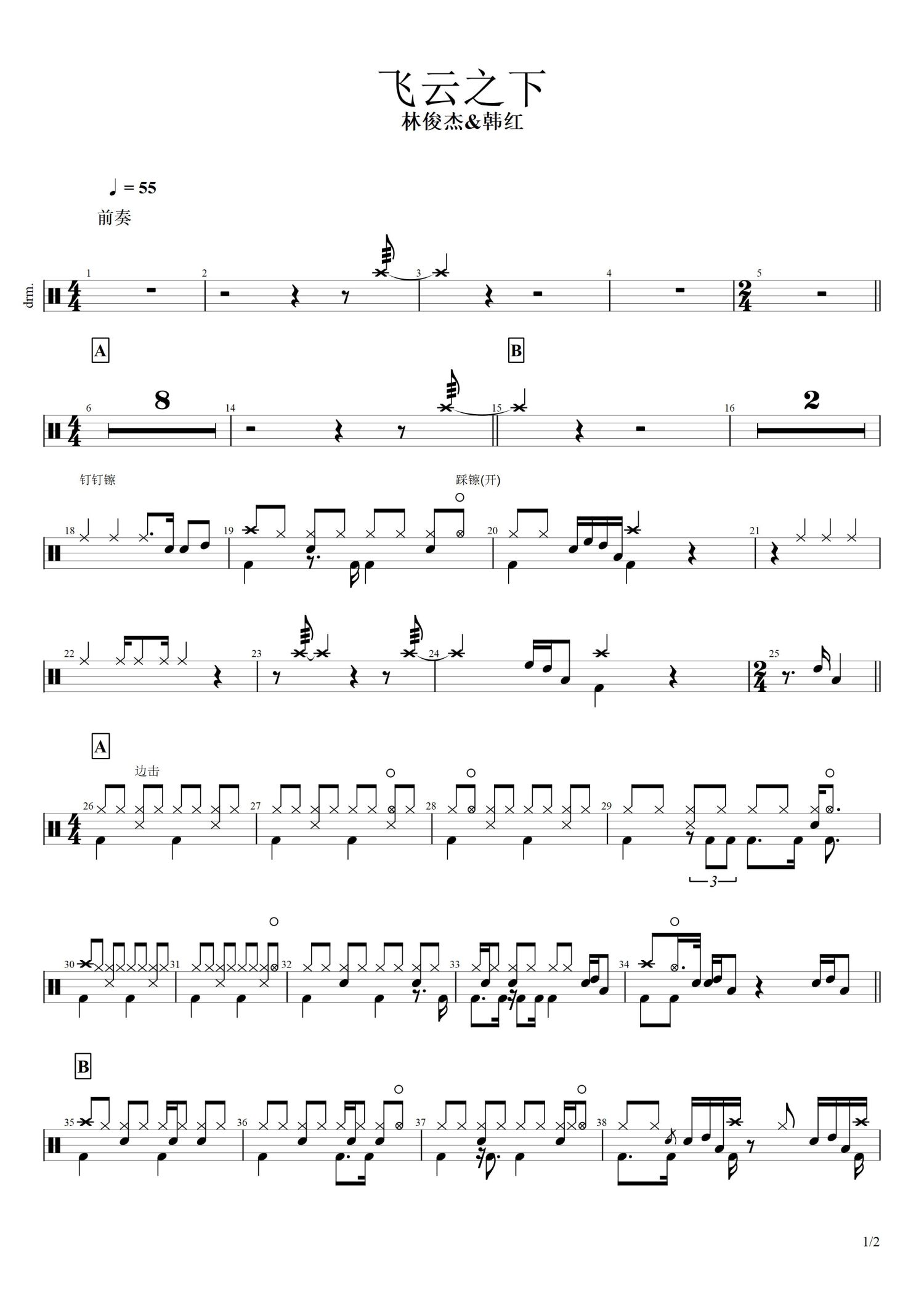 • 飞云之下鼓谱 - 林俊杰/韩红 - 架子鼓谱第1张