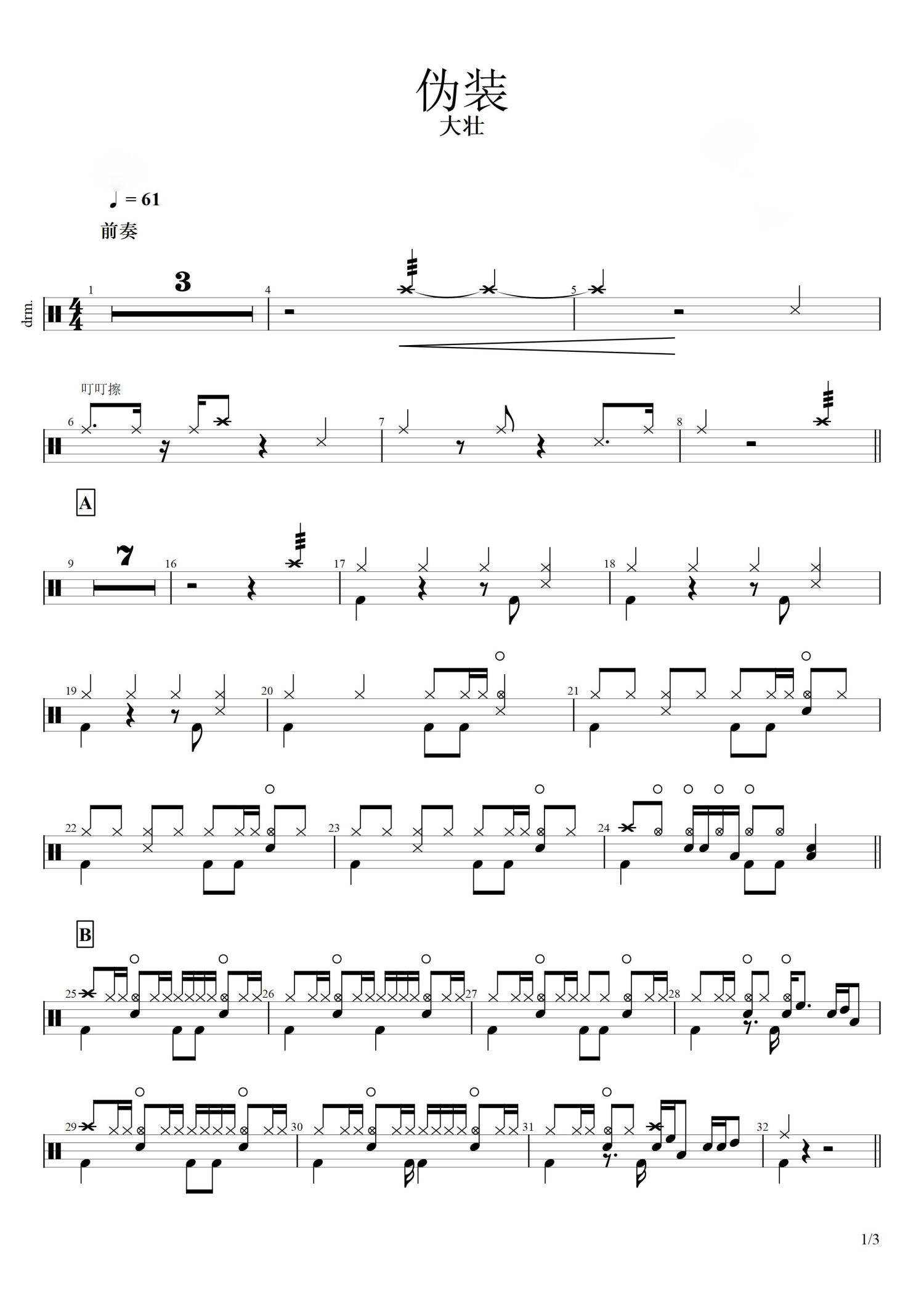 伪装鼓谱 - 大壮 - 架子鼓谱