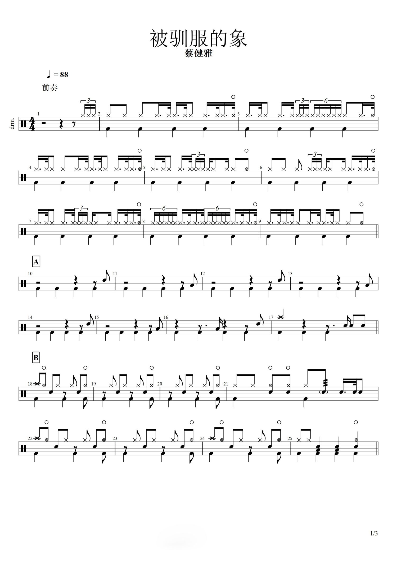 • 被驯服的象鼓谱 - 蔡健雅 - 架子鼓谱第1张