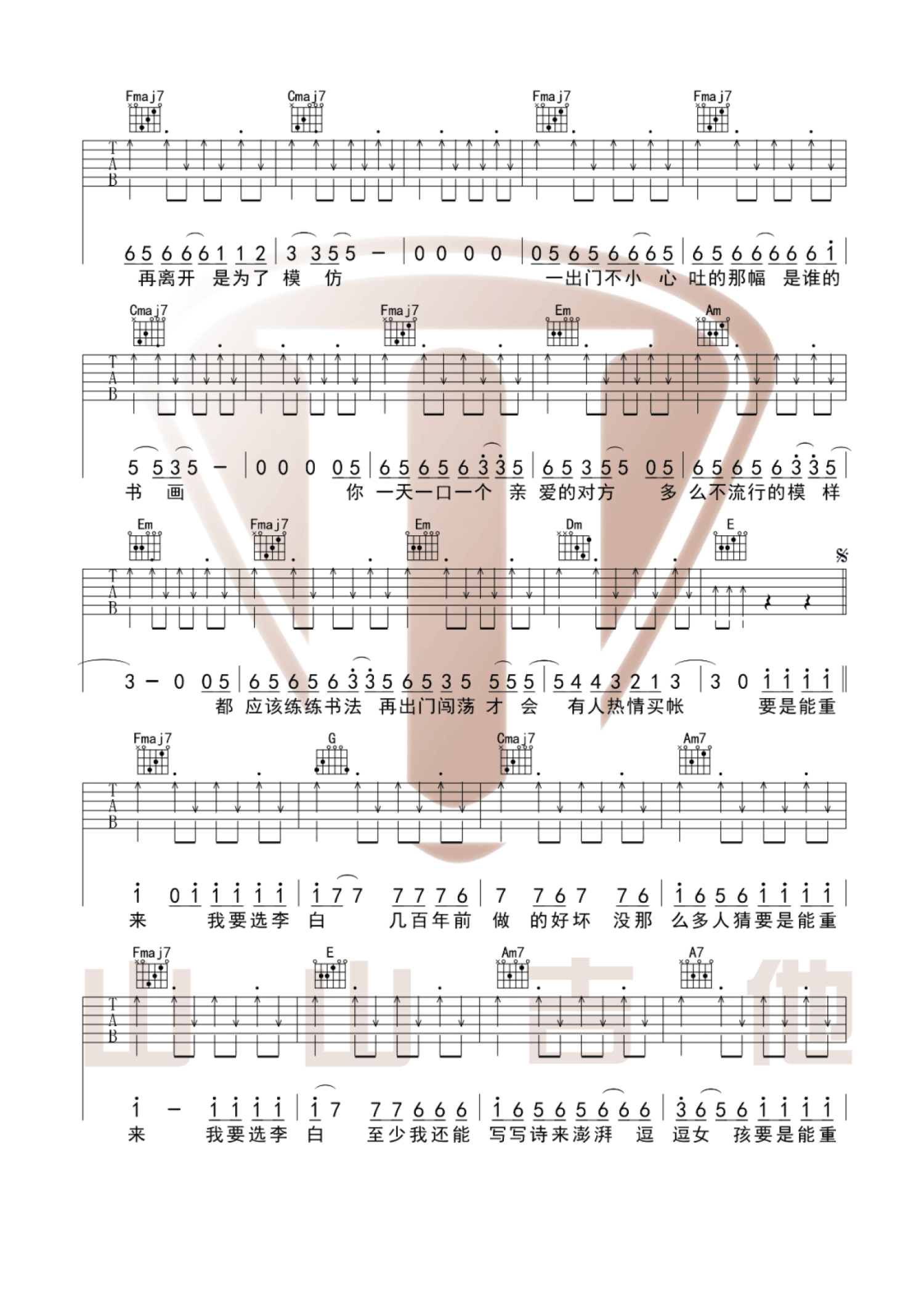 当前位置:琴谱网>吉他弹唱>李白