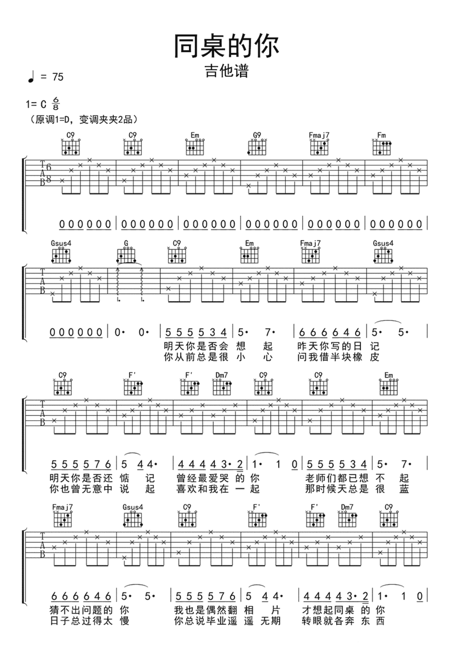 当前位置:琴谱网>吉他弹唱>同桌的你
