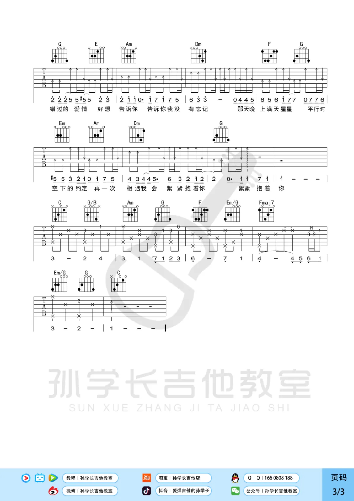 吉他弹唱C调来源:孙学长吉他教师613 浏览2022-05-18 21:38发布图谱共3页