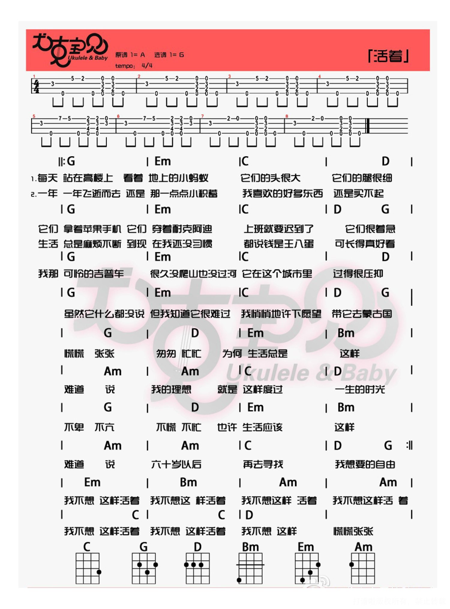 当前位置:琴谱网>尤克里里>活着