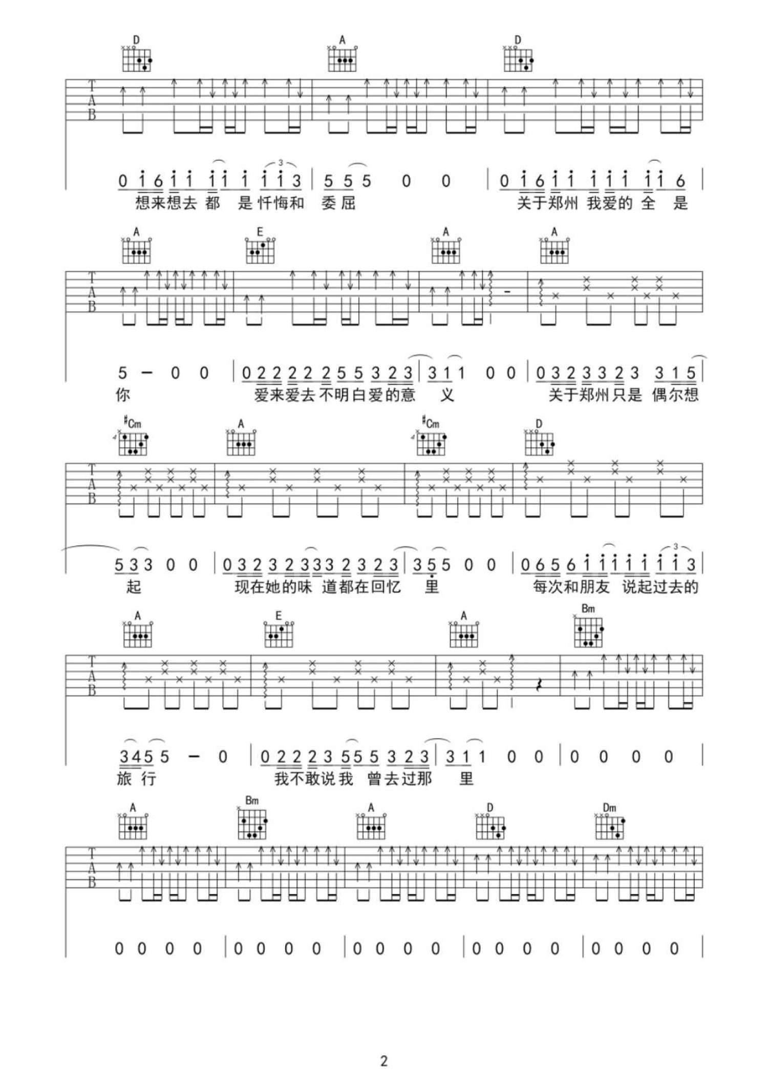 关于郑州的记忆吉他谱 - 李志 - A调吉他弹唱谱