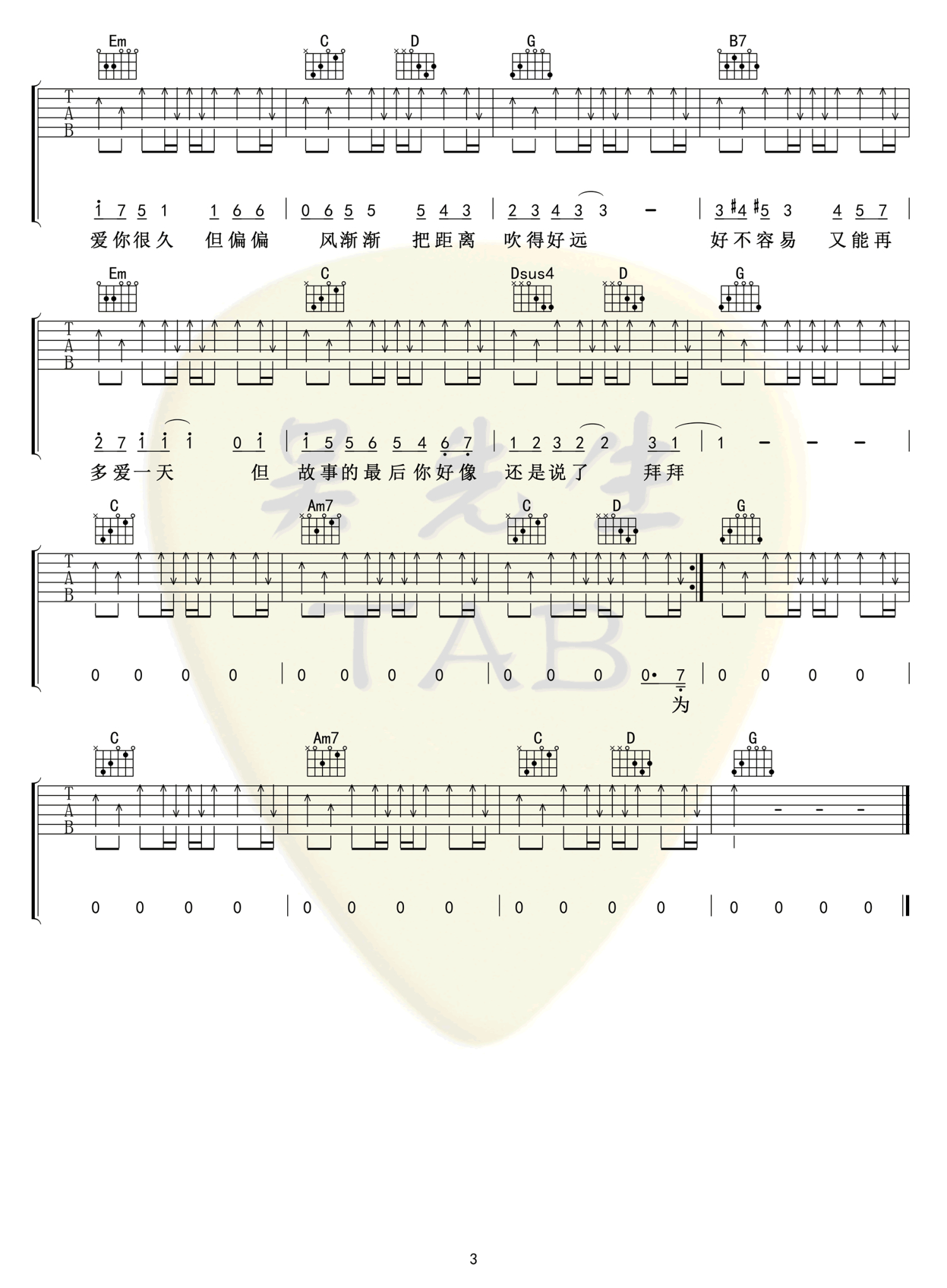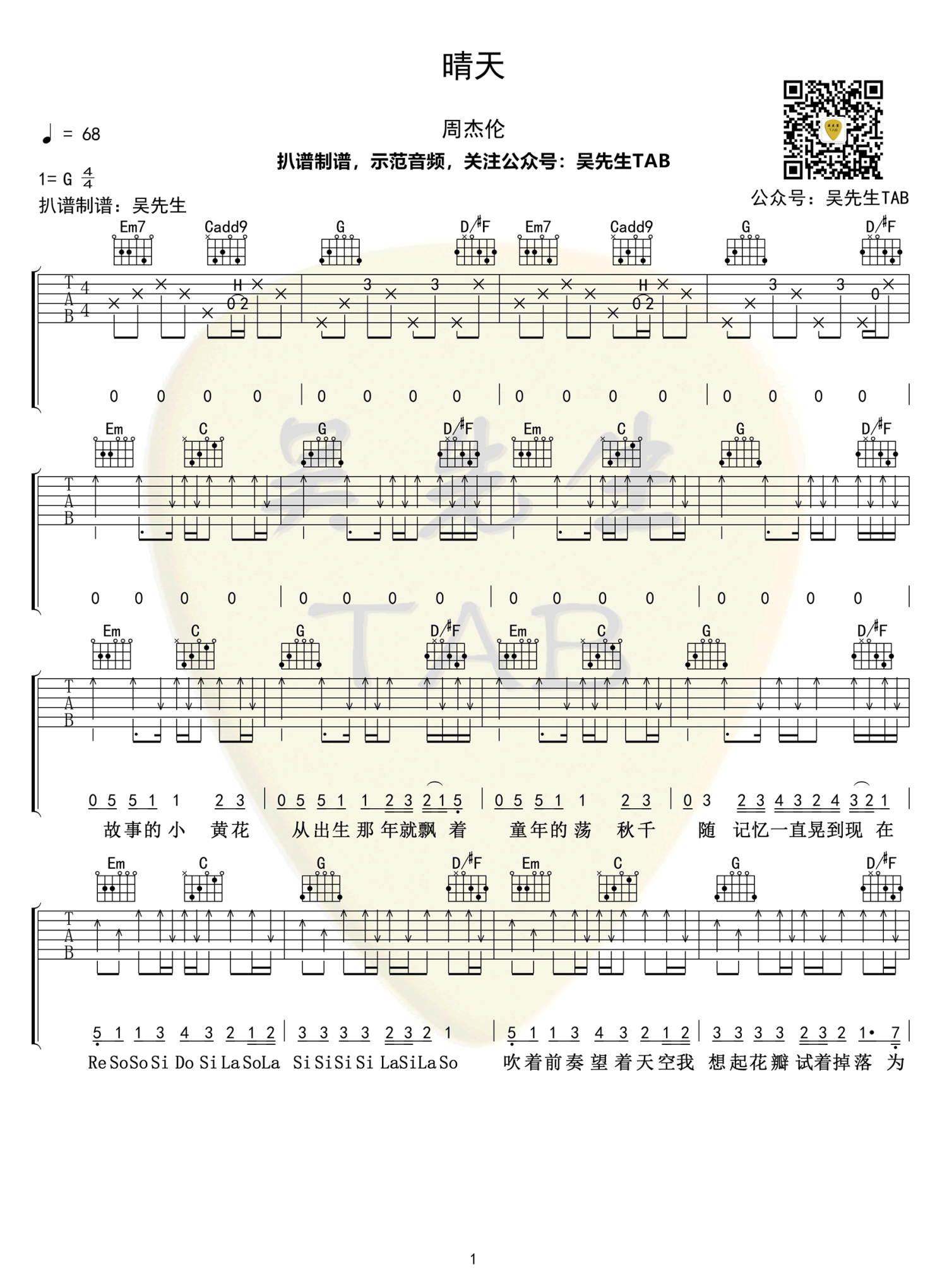 吉他弹唱G调来源:吴先生TAB587 浏览2022-05-21 09:43发布图谱共3页