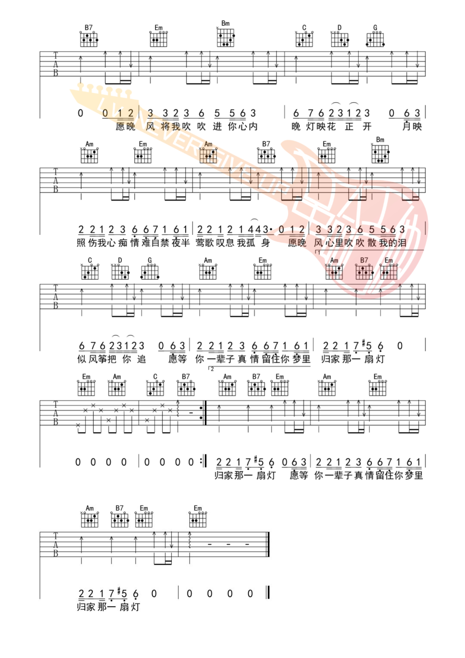 当前位置:琴谱网>吉他弹唱>晚风心里吹