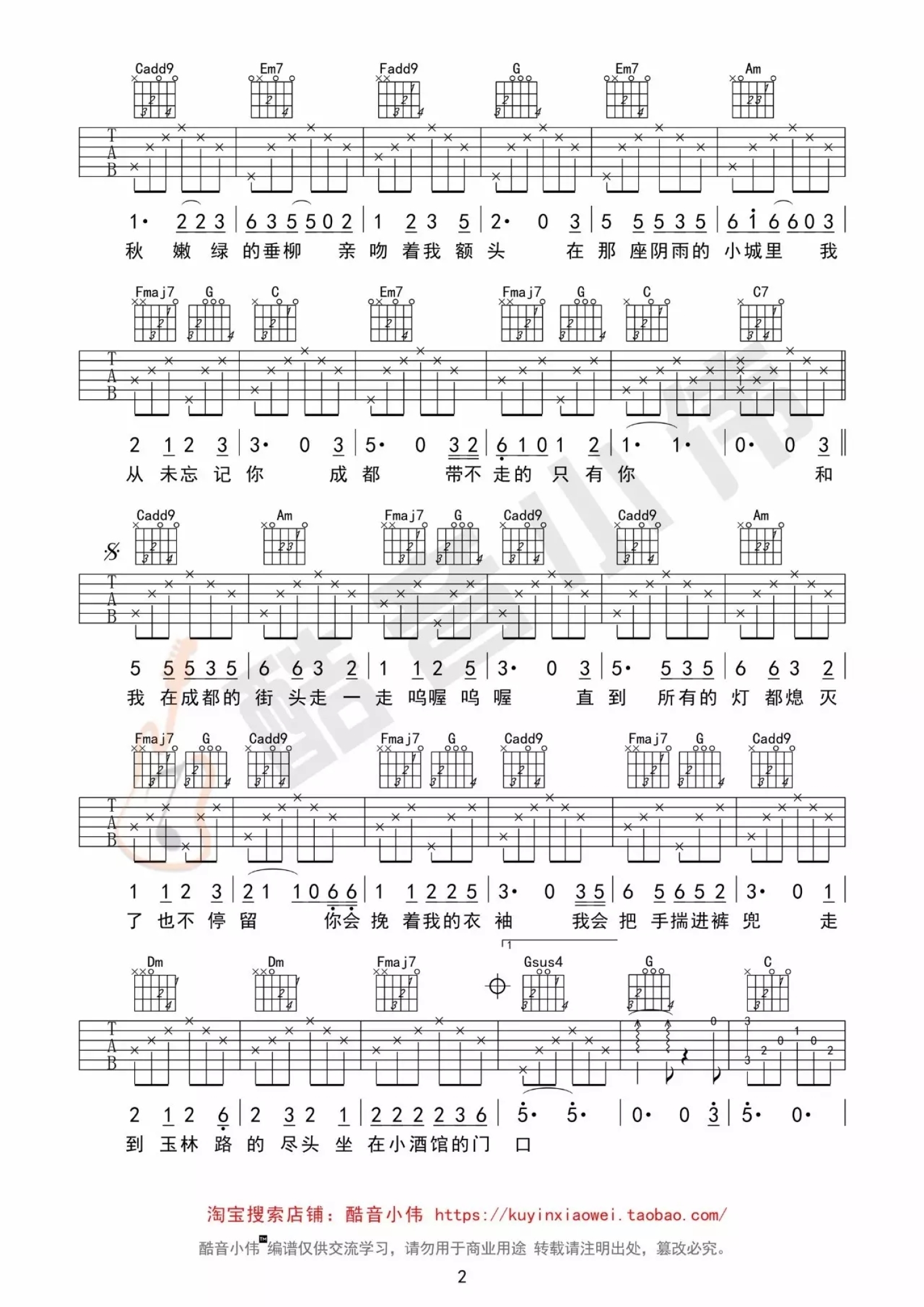 当前位置:琴谱网>吉他弹唱>成都