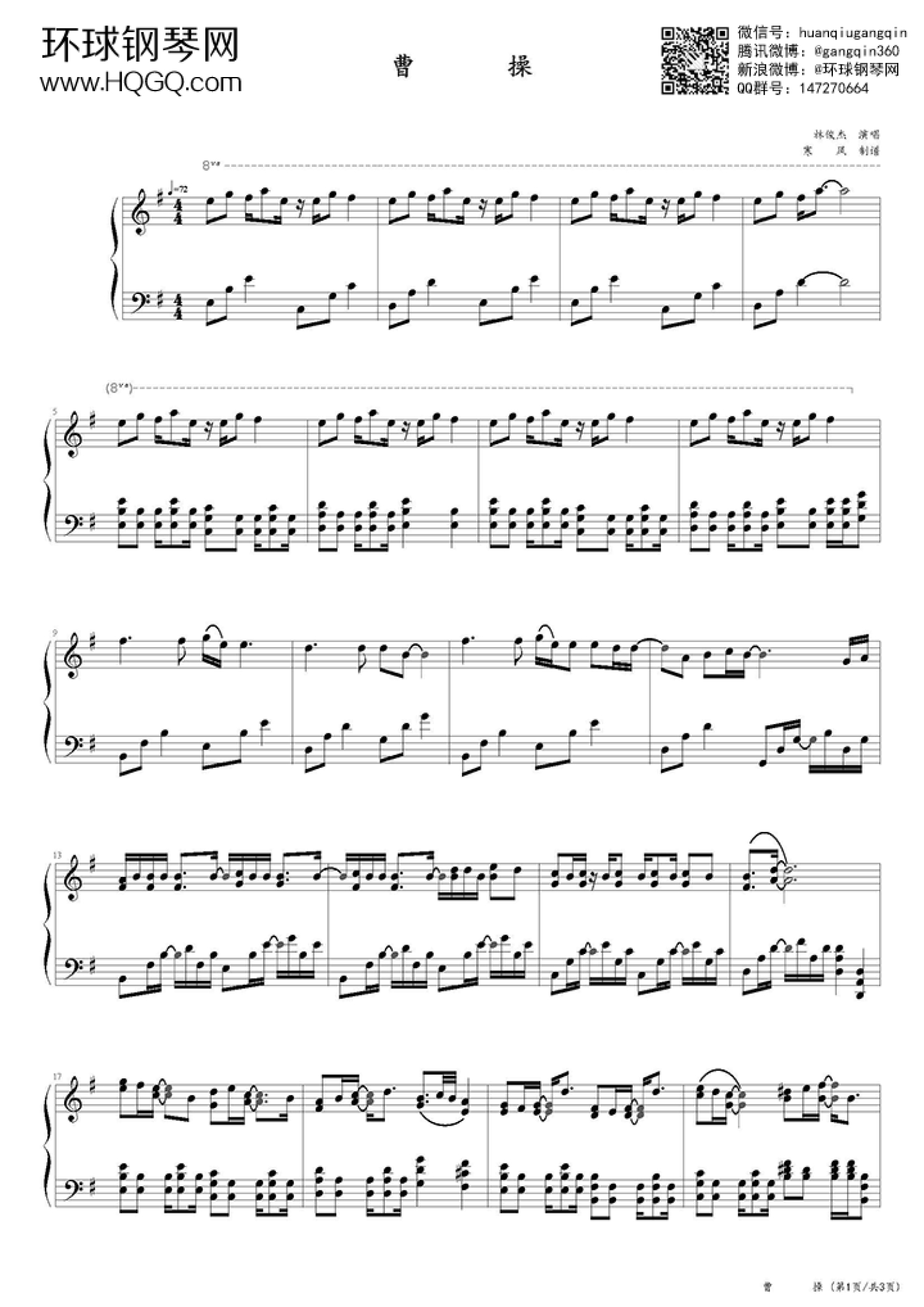 曲谱介绍: 钢琴谱曹操(演奏版)-林俊杰