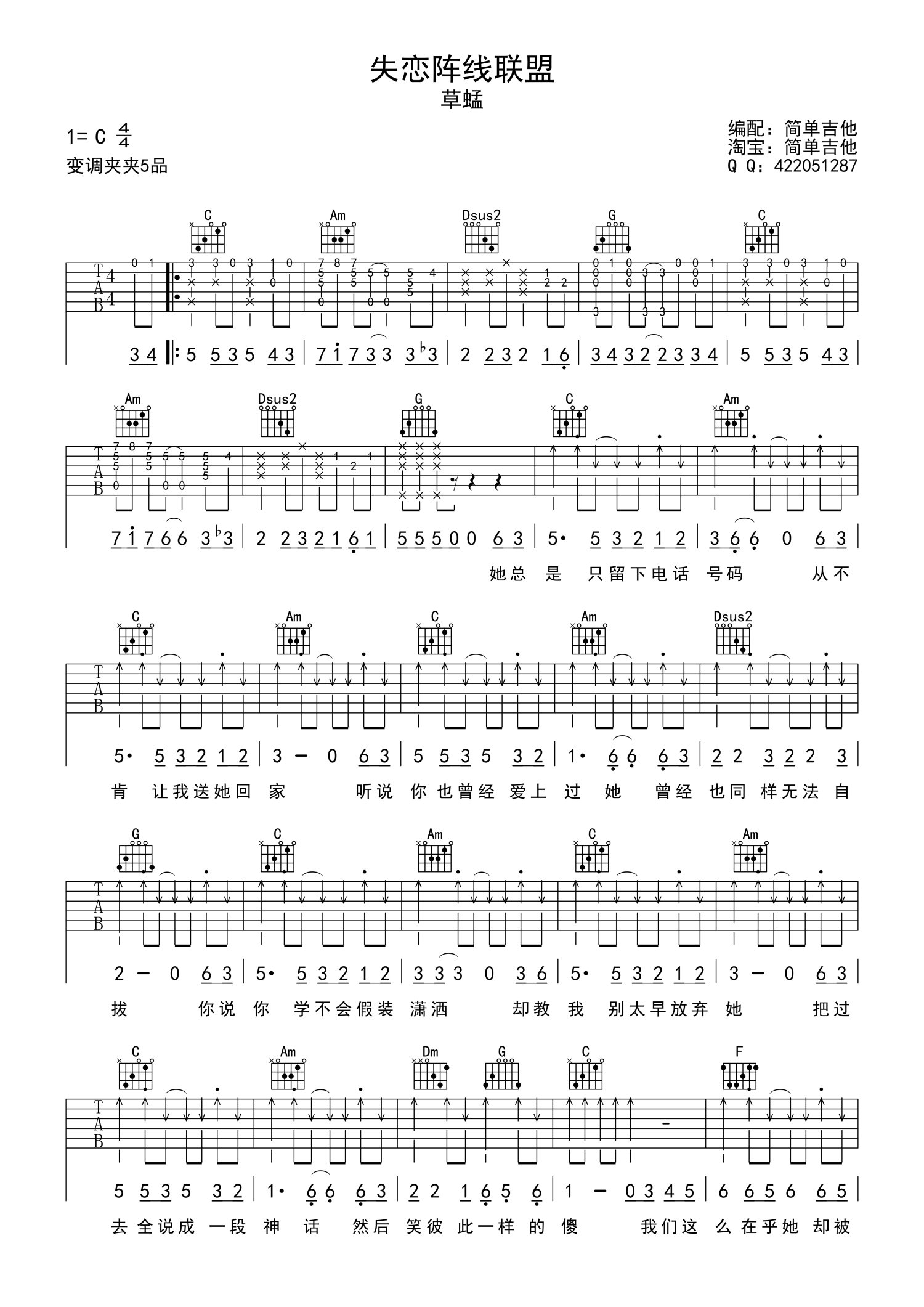 吉他弹唱C调来源:简单吉他3083 浏览2019-07-01 20:24发布图谱共2页