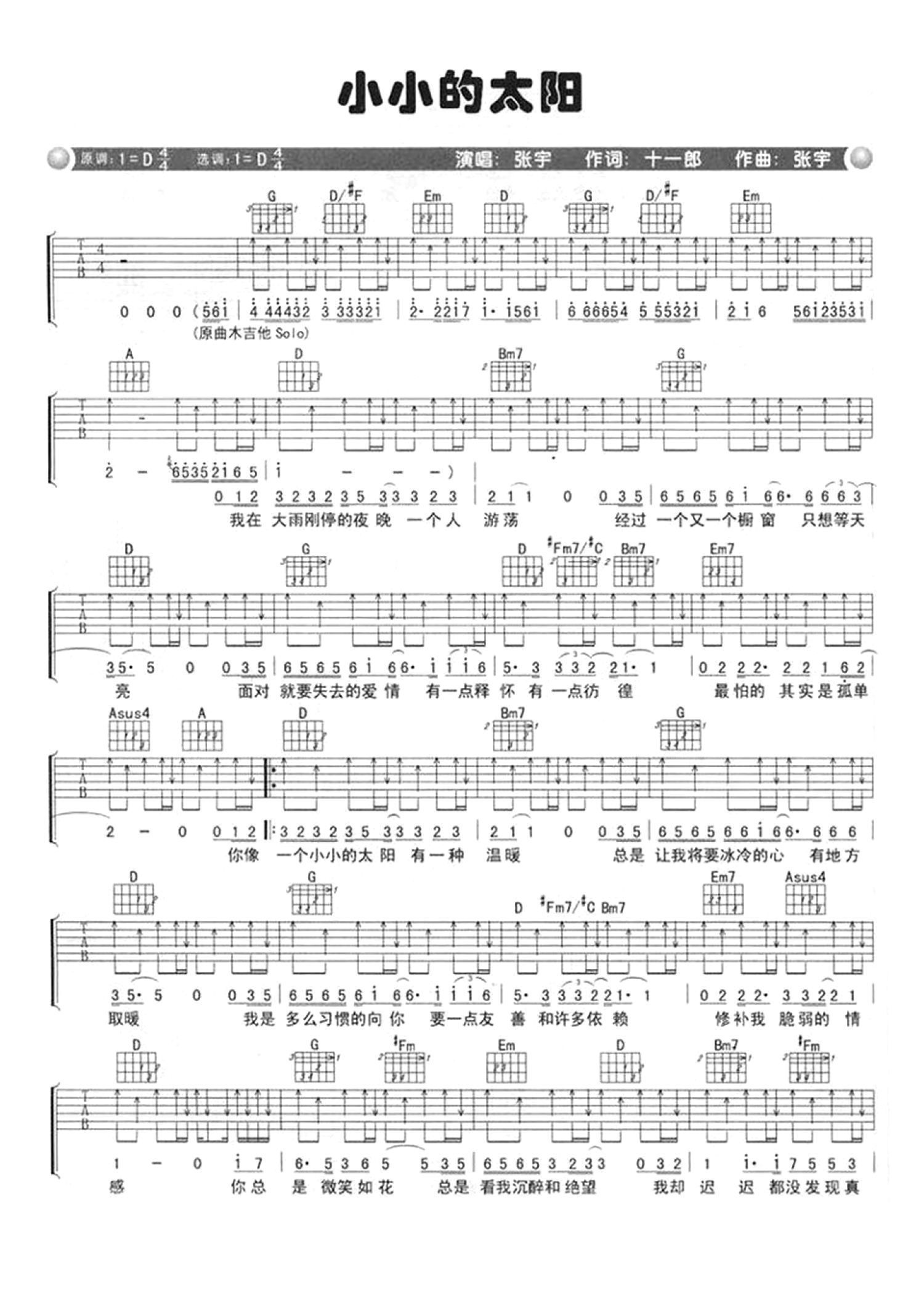 曲谱介绍: 小小的太阳-张宇(吉他谱)