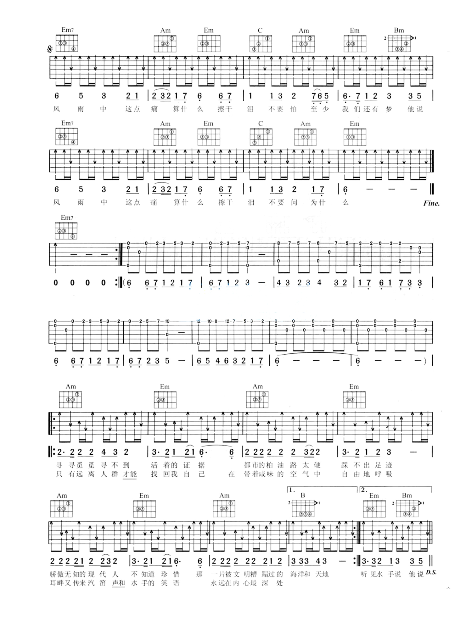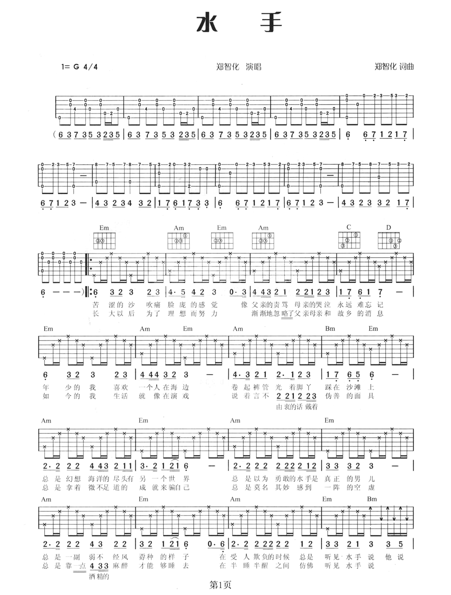 曲谱介绍: 郑智化《水手》吉他谱_《水手》弹唱谱