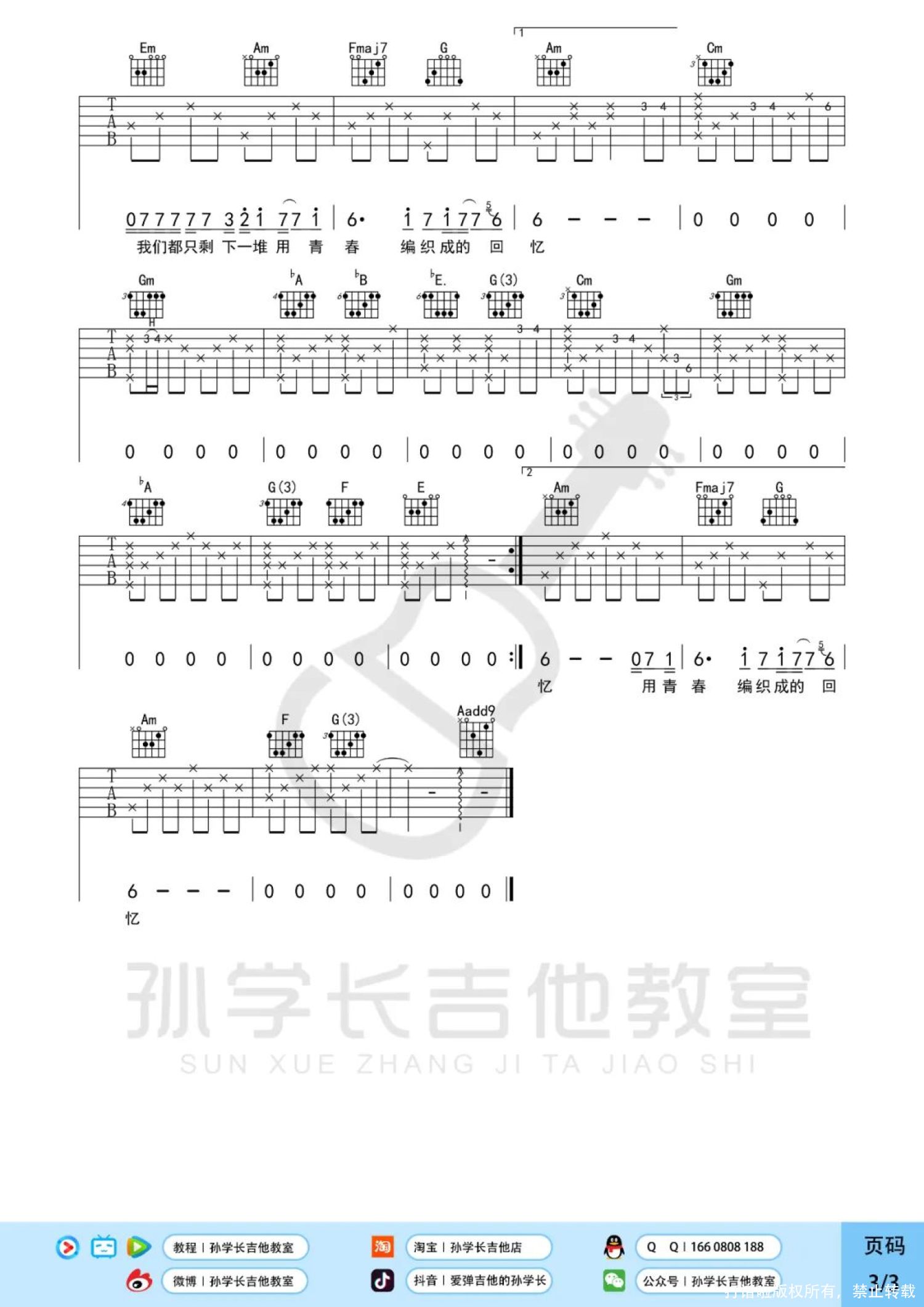 吉他弹唱原调来源:孙学长吉他教室638 浏览2022-06-09 17:21发布图谱共3页