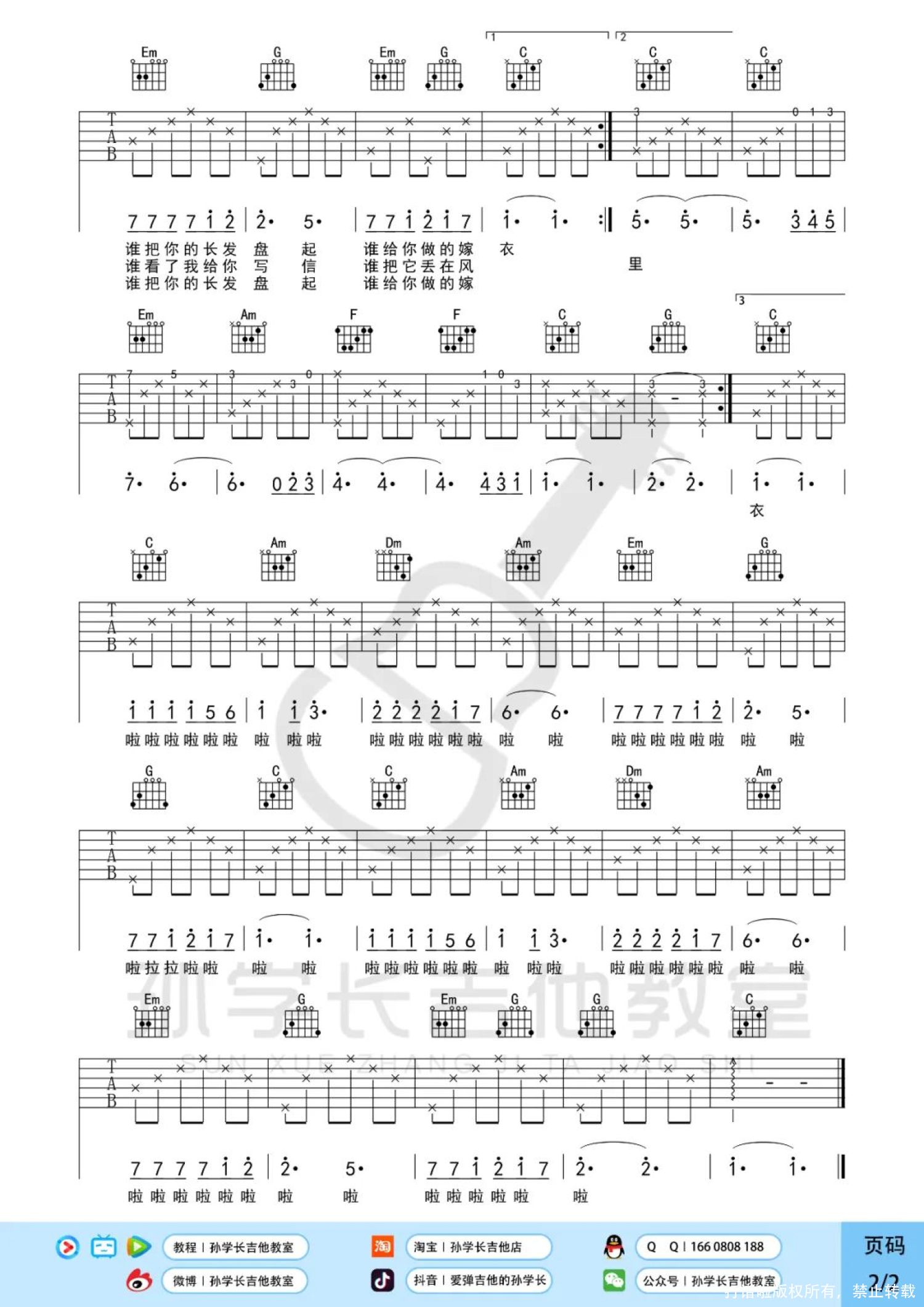 吉他弹唱原调来源:孙学长吉他教室539 浏览2022-06-09 17:21发布图谱共2页