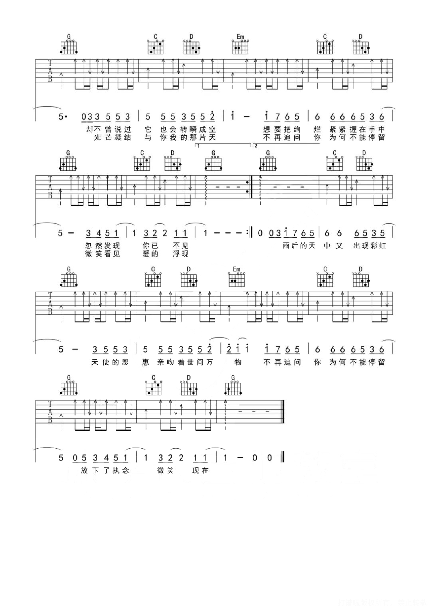 吉他弹唱原调来源:孙学长吉他教室493 浏览2022-07-01 19:46发布图谱共2页