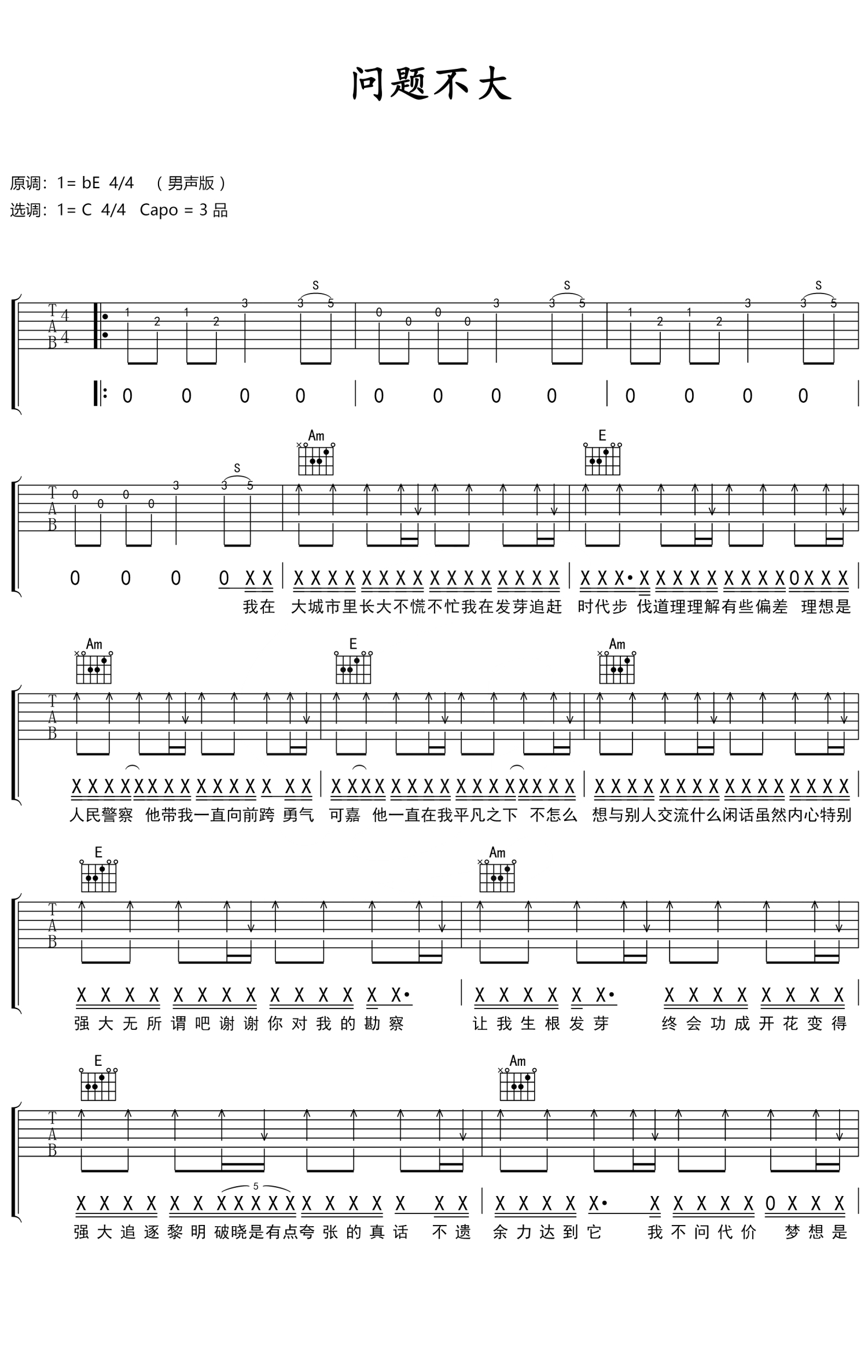 问题不大吉他谱 - 李沛轩 - C调吉他弹唱谱