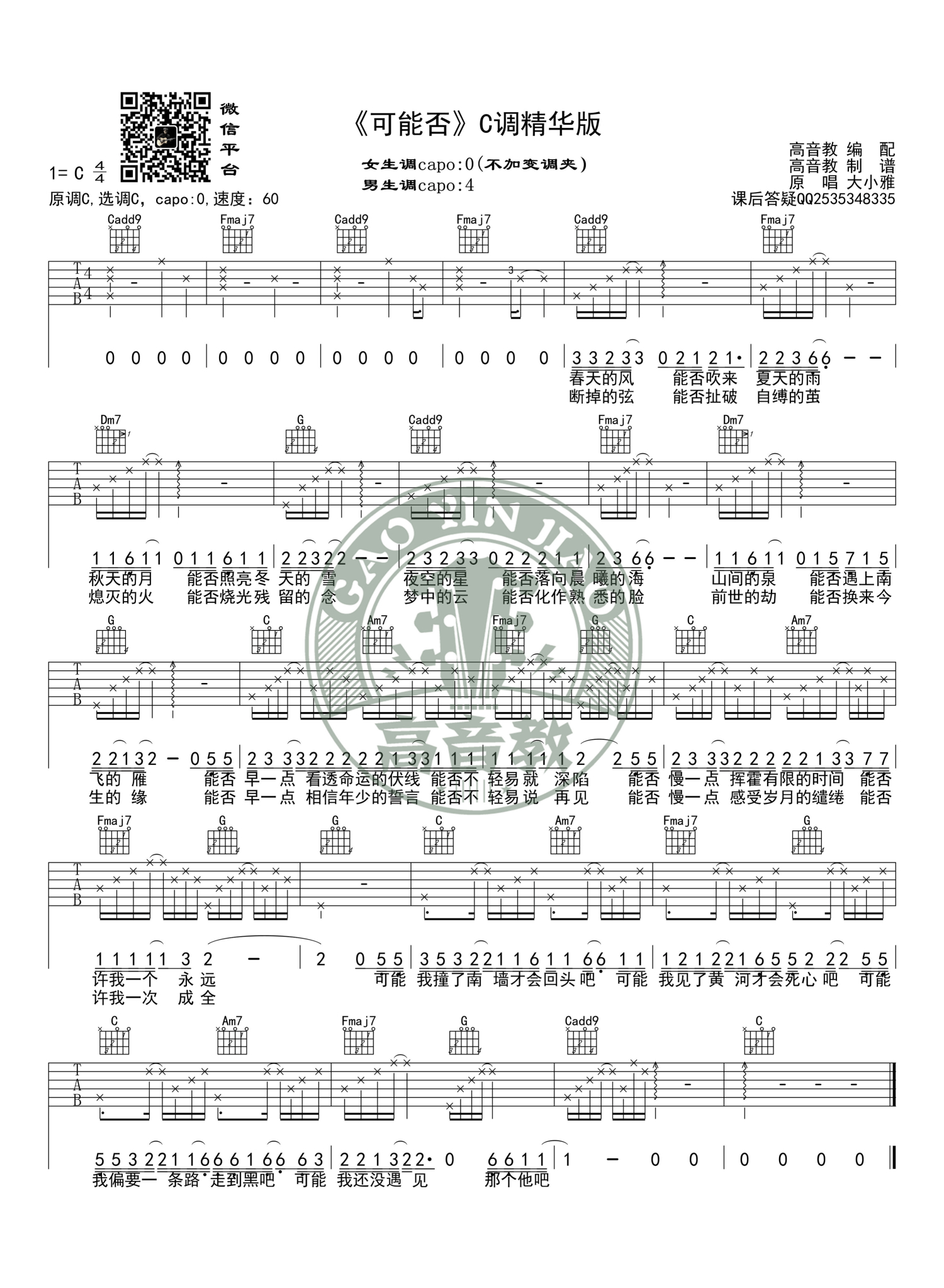 可能否吉他谱 - 木小雅 - C调吉他弹唱谱