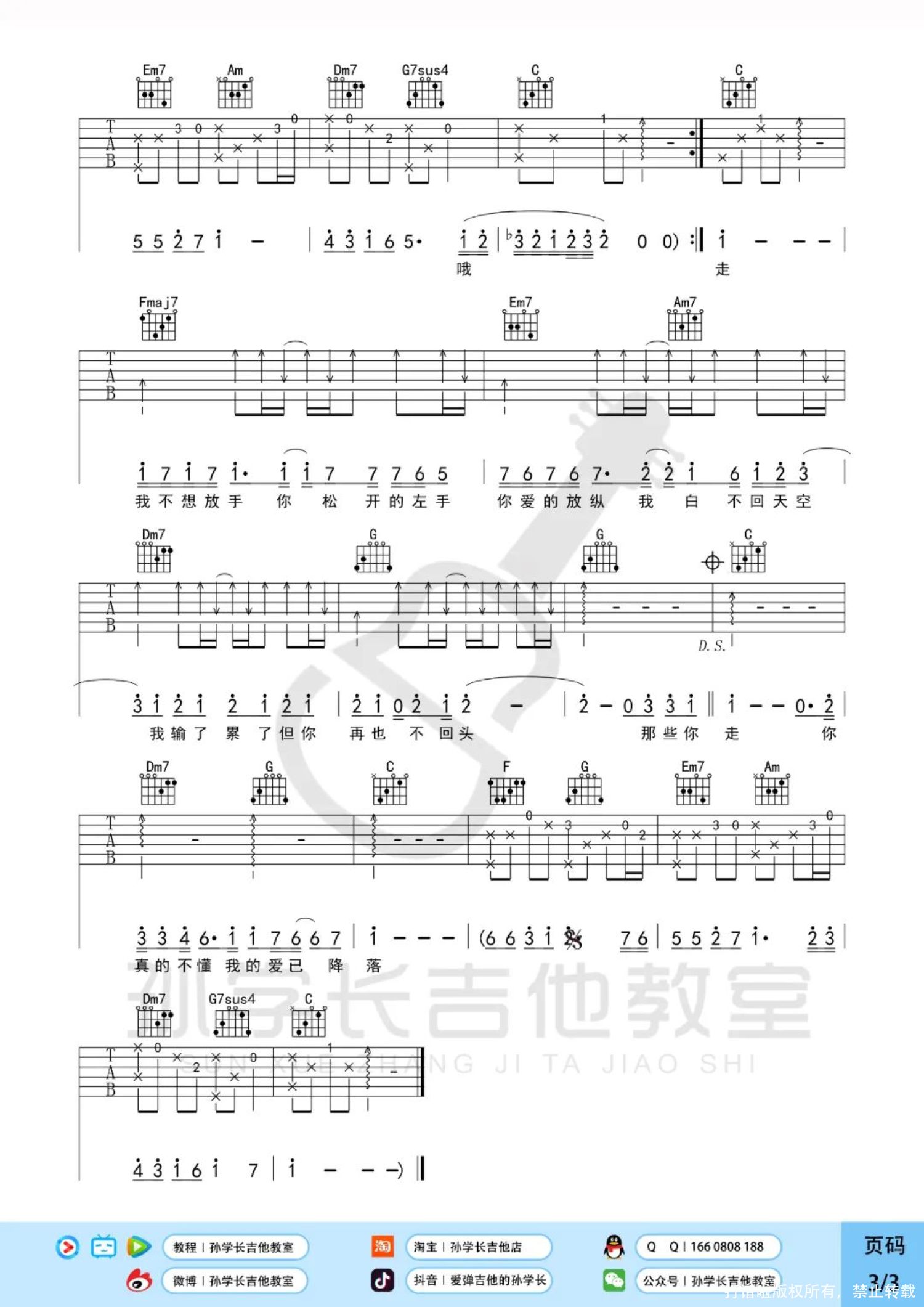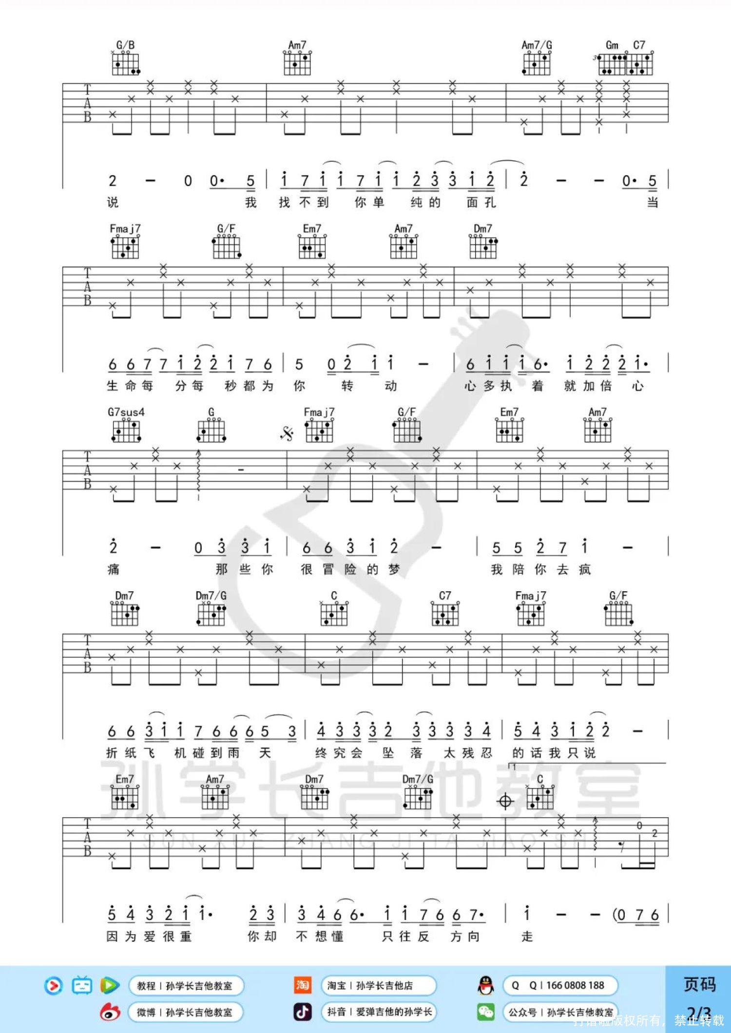 吉他弹唱原调来源:孙学长吉他教室503 浏览2022-06-09 17:20发布图谱共3页