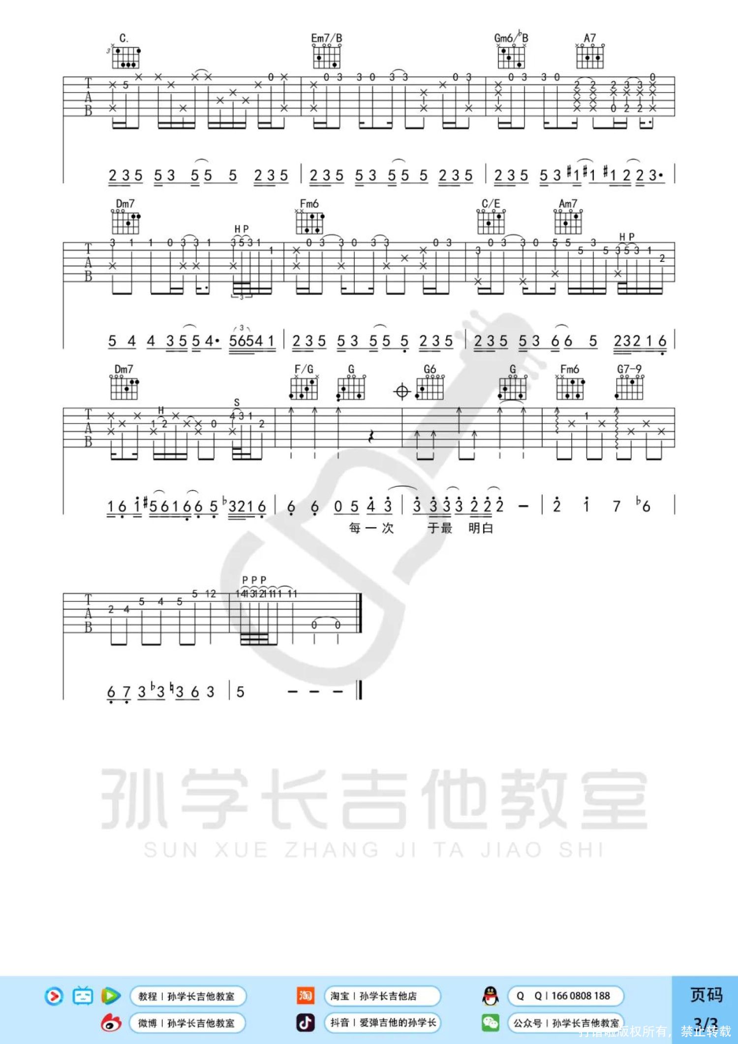 吉他弹唱原调来源:孙学长吉他教室3232 浏览2022-06-09 17:20发布图谱共3页