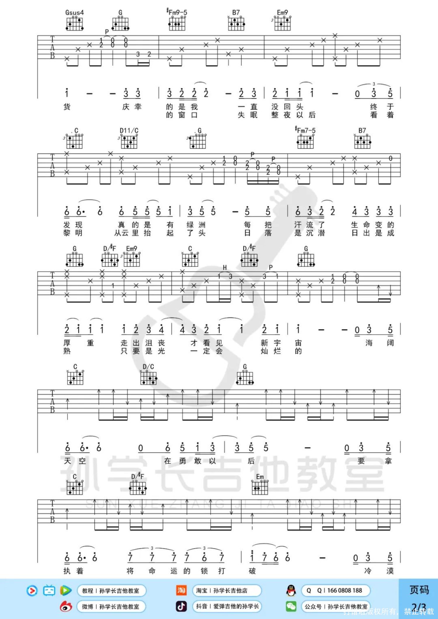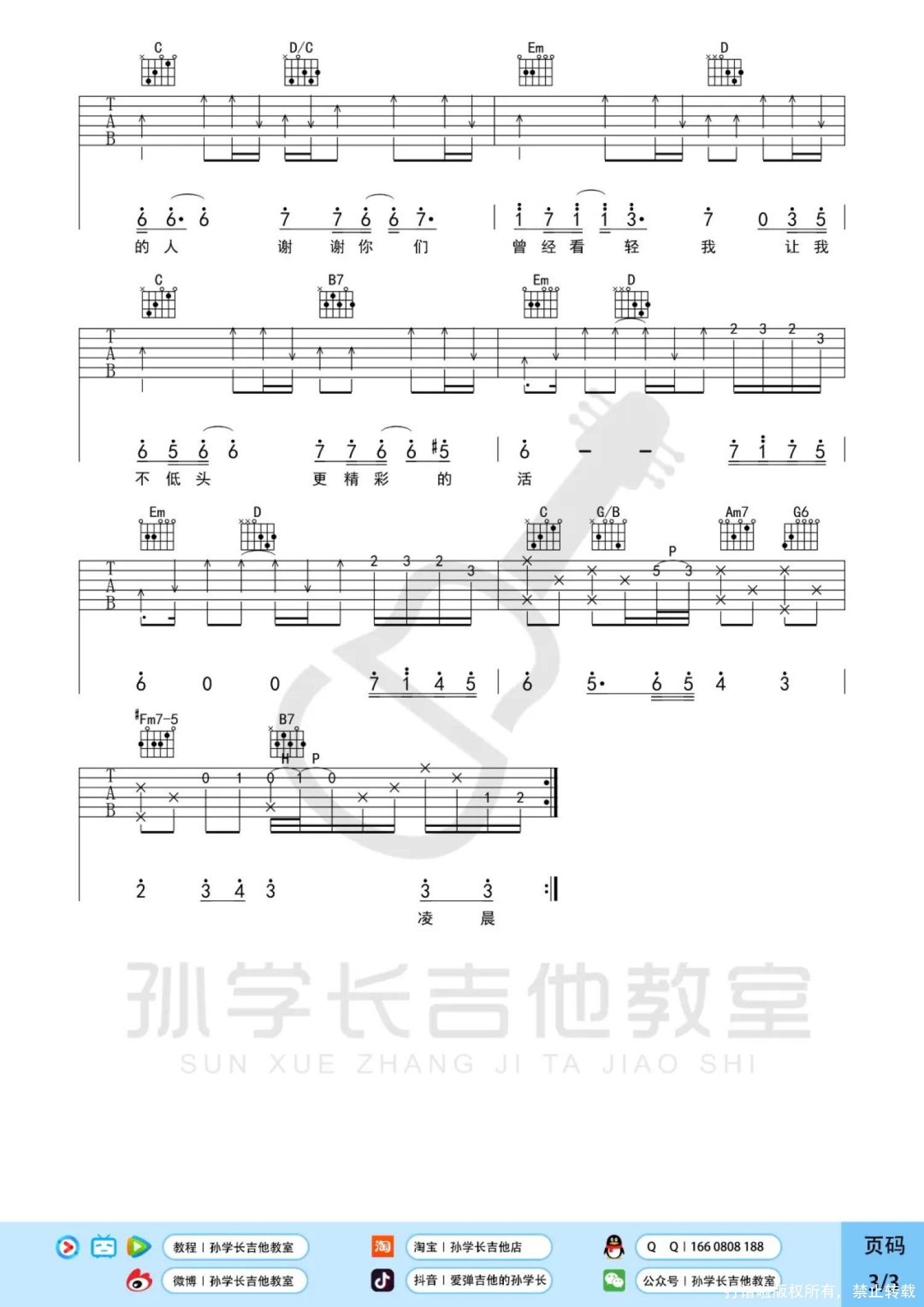 吉他弹唱原调来源:孙学长吉他教室1176 浏览2022-06-09 17:20发布图谱共3页