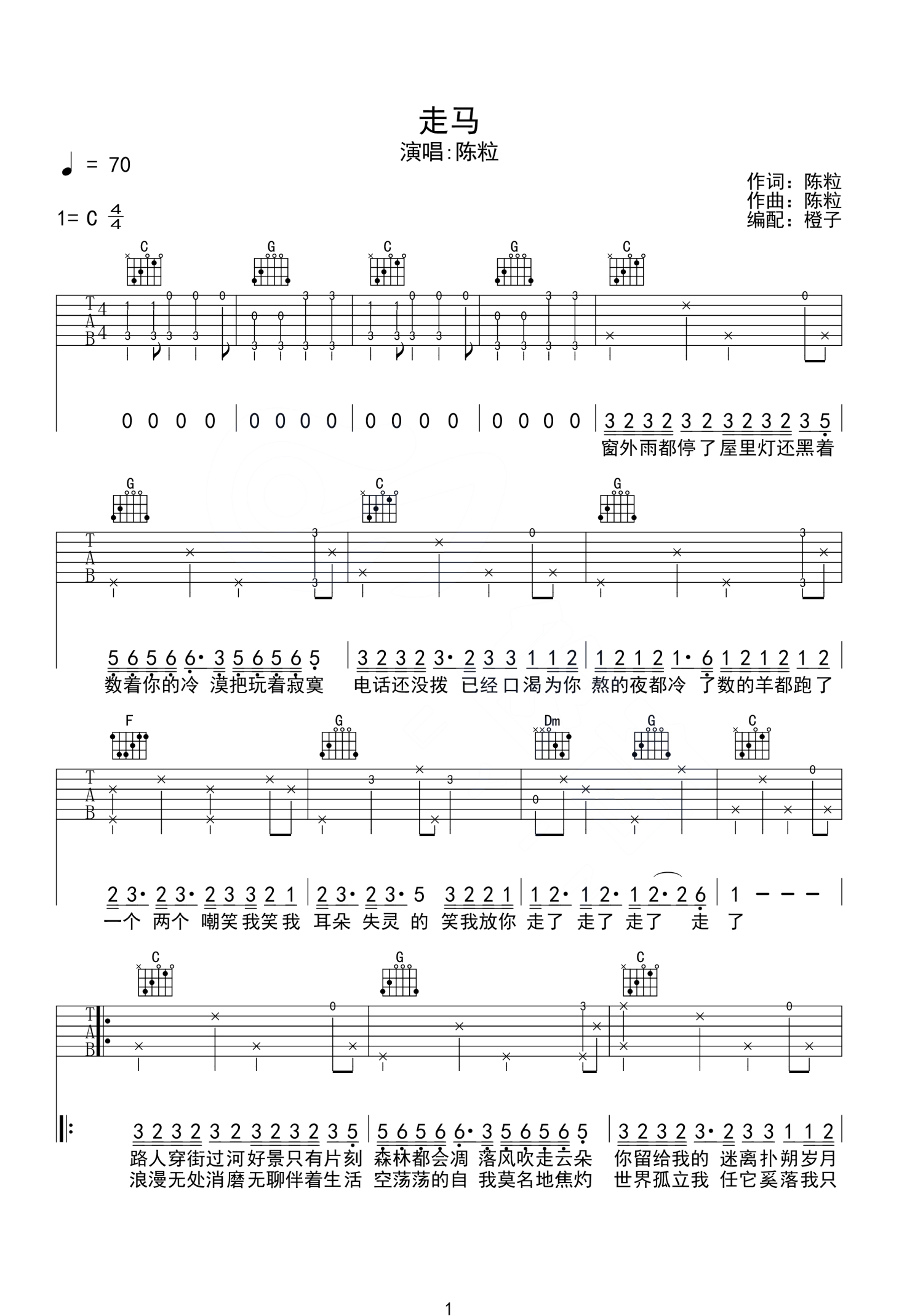当前位置:琴谱网>吉他弹唱>走马