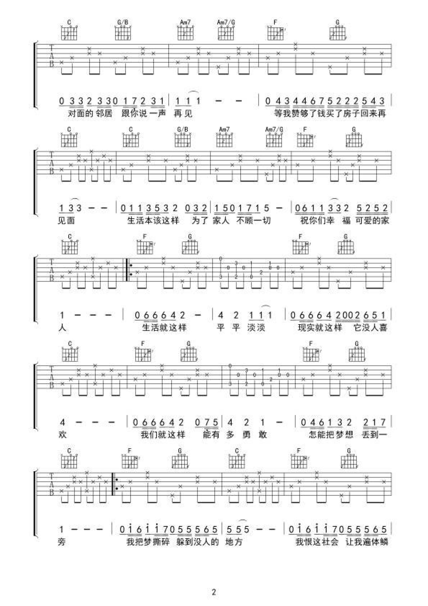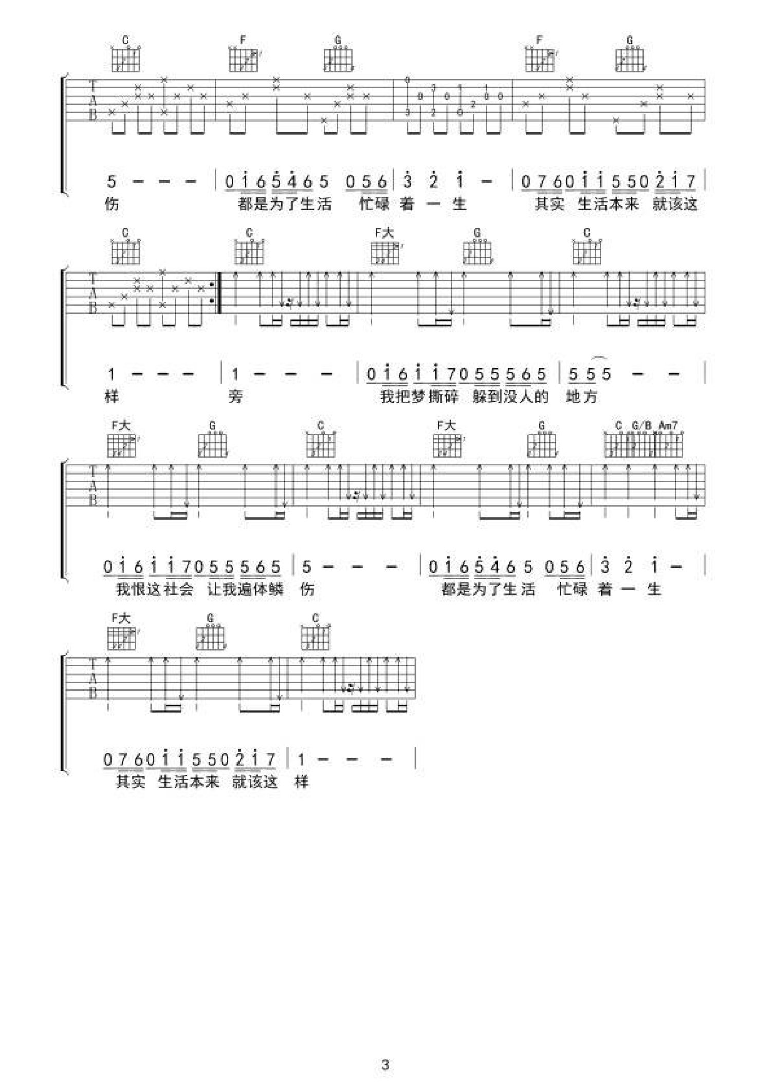 生活就这样吉他谱 - 刘俊男 - C调吉他弹唱谱