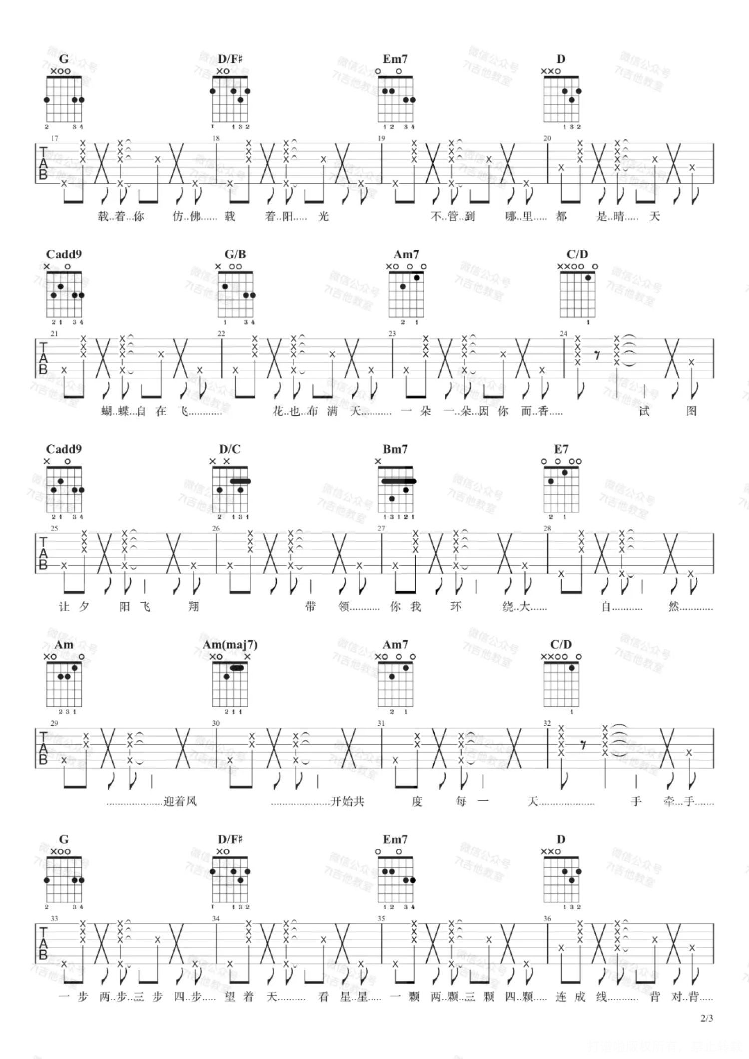 吉他弹唱G调来源:7T吉他教室521 浏览2022-06-21 20:15发布图谱共3页