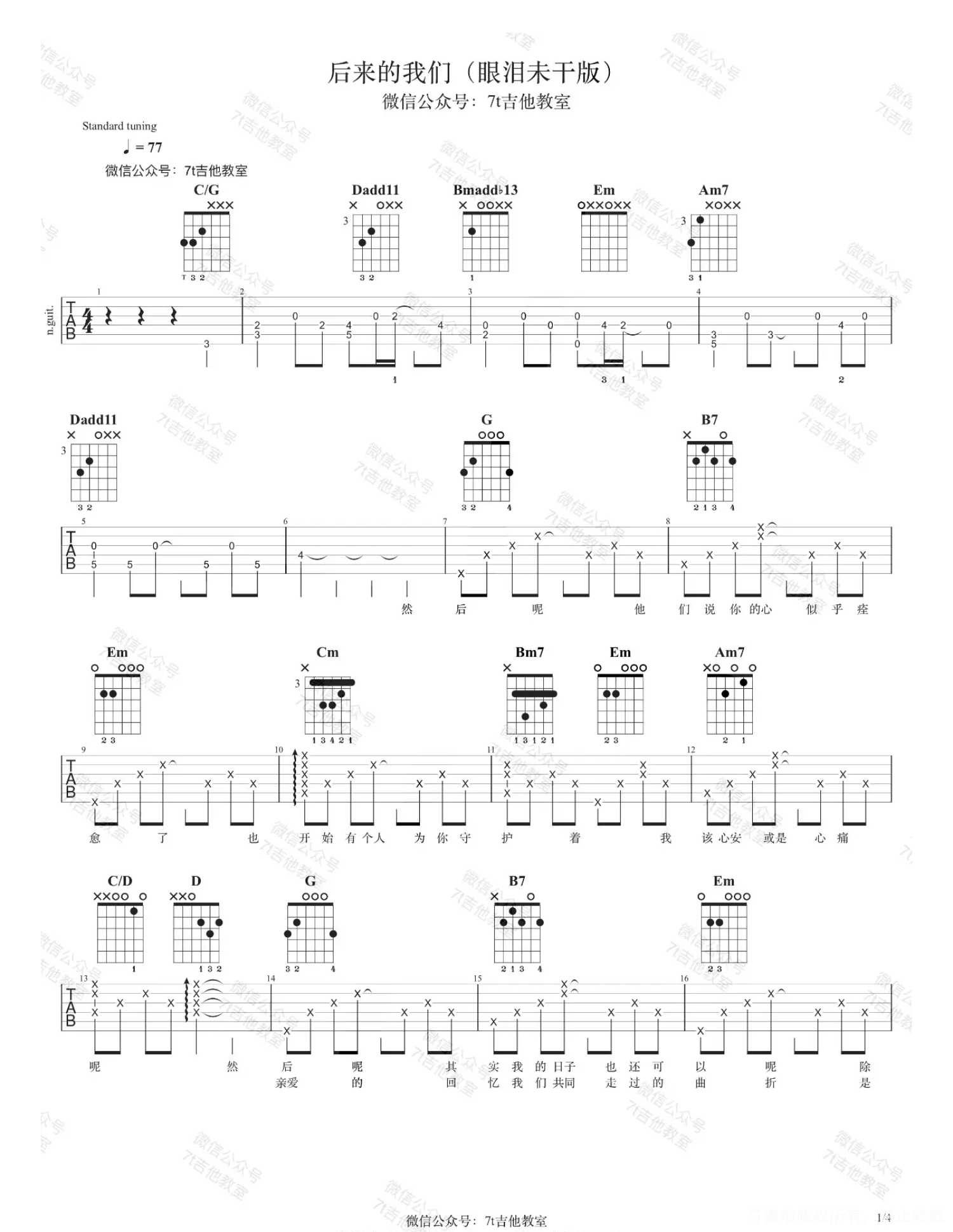 曲谱介绍: 五月天《后来的我们》吉他弹唱谱,共有4张高清图谱。