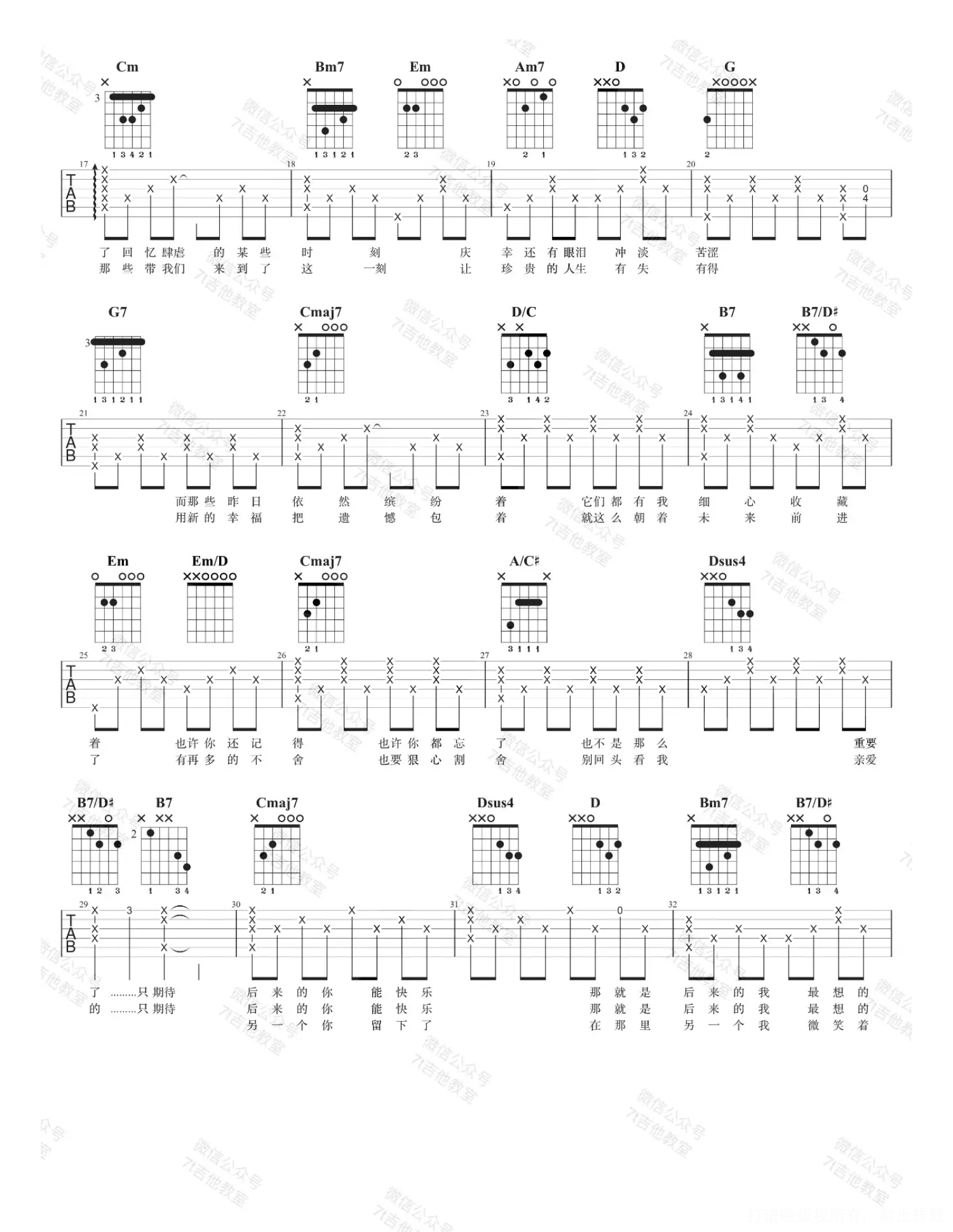 吉他弹唱C调来源:7T吉他教室1081 浏览2022-07-01 19:46发布图谱共4页