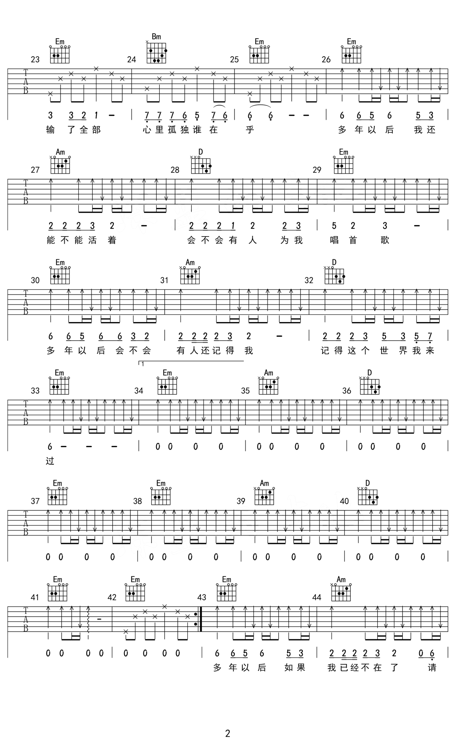 当前位置:琴谱网>吉他弹唱>多年以后