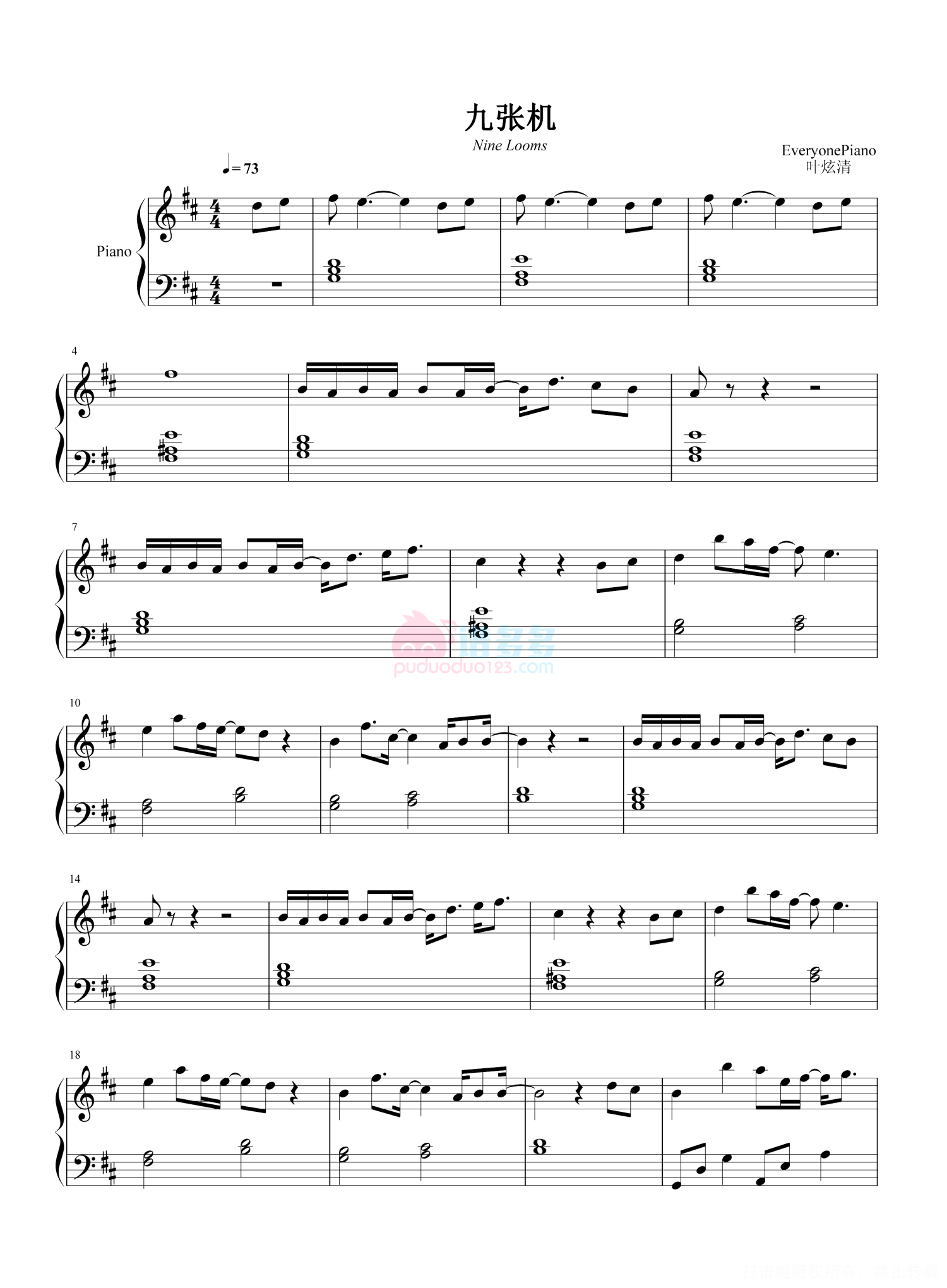 九张机钢琴谱 - 叶清炫